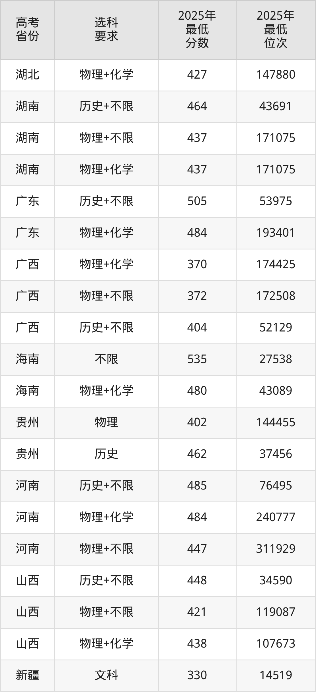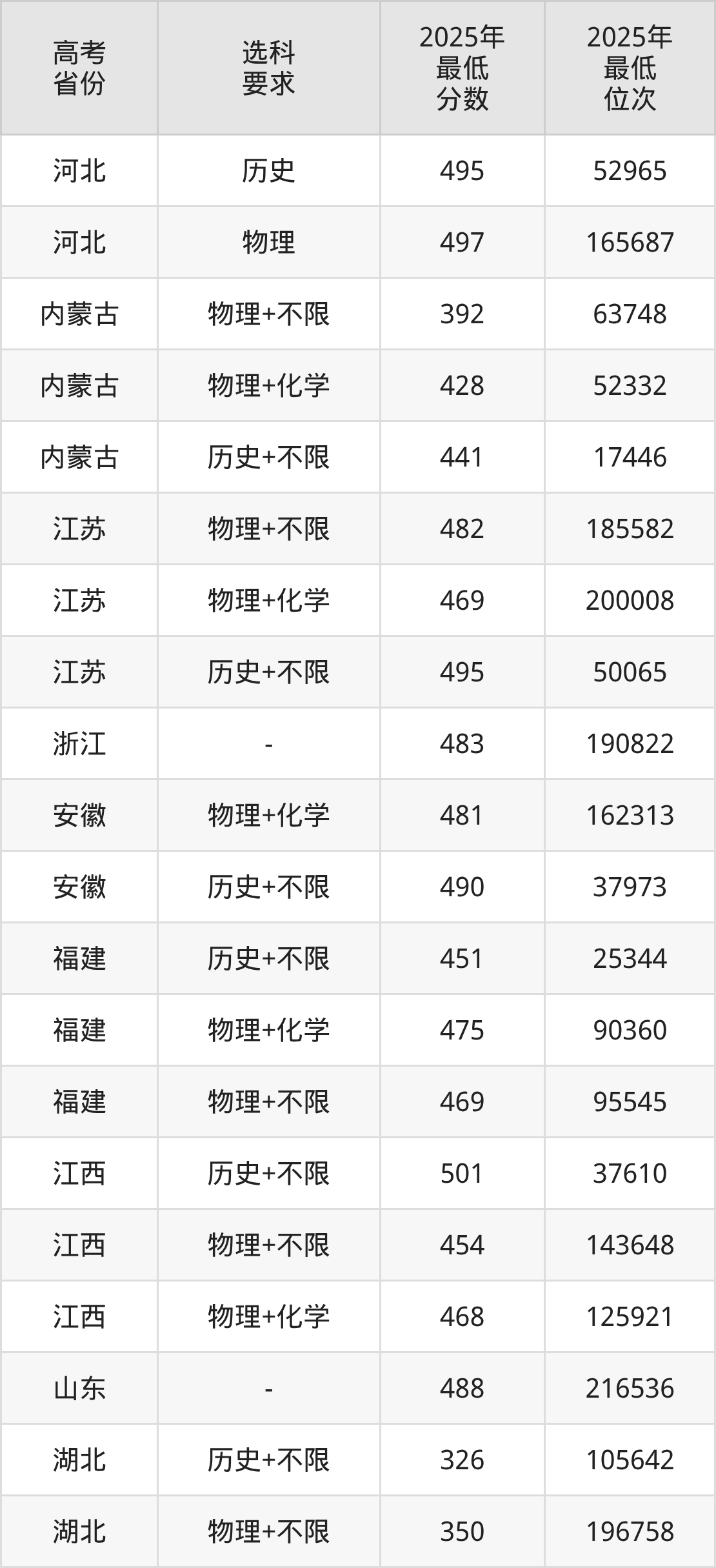 在2025年湖北高考物理类招生时,公办本科收分最低的是新疆工程学院第02组,最低分是224分、位次是243851位。再看武汉晴川学院,2025年在湖北物理类的最低录取分数线是350分,最低位次是196758位。