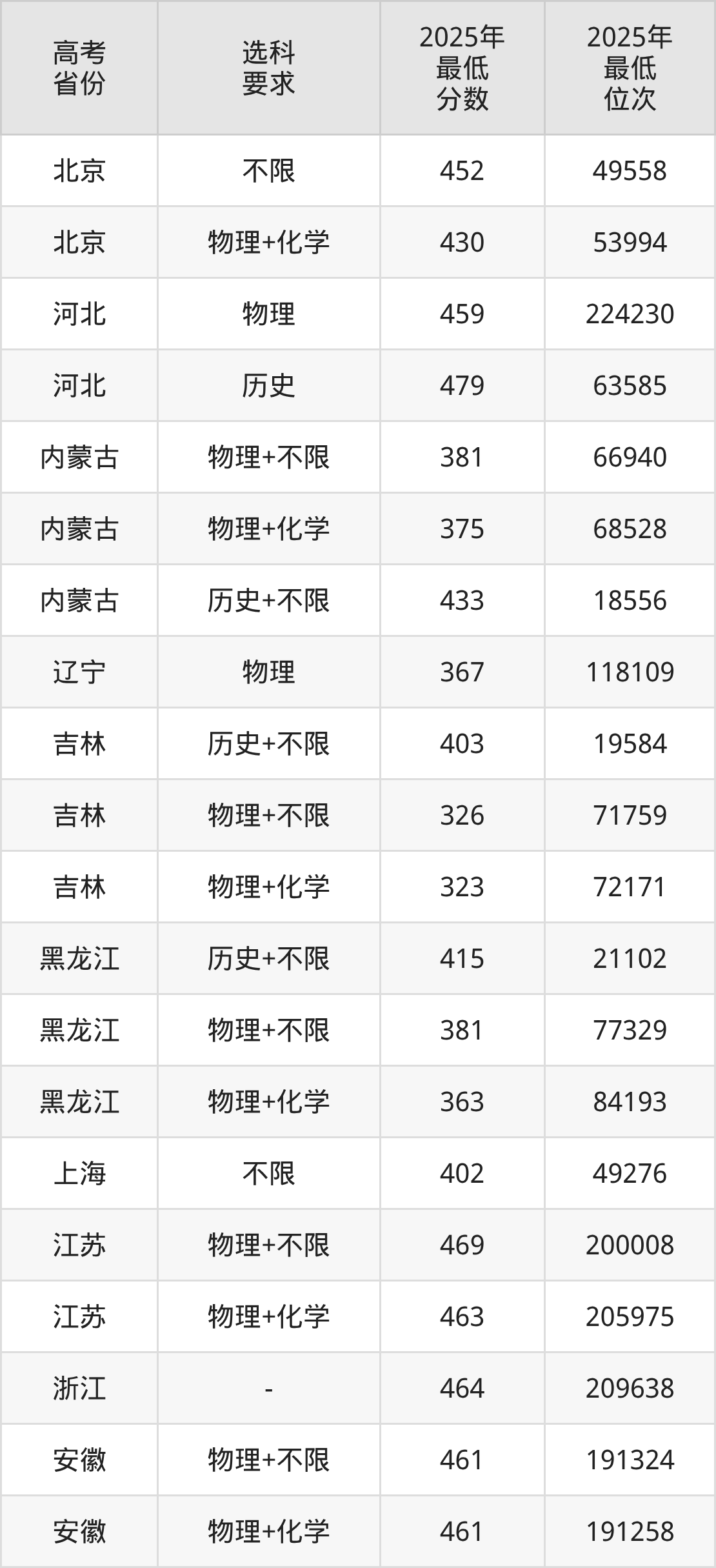 在2025年吉林高考物理类招生时,公办本科收分最低的是内蒙古民族大学第007组,最低分是170分、位次是78981位。再看长春建筑学院,2025年在吉林物理类的最低录取分数线是323分,最低位次是72171位。