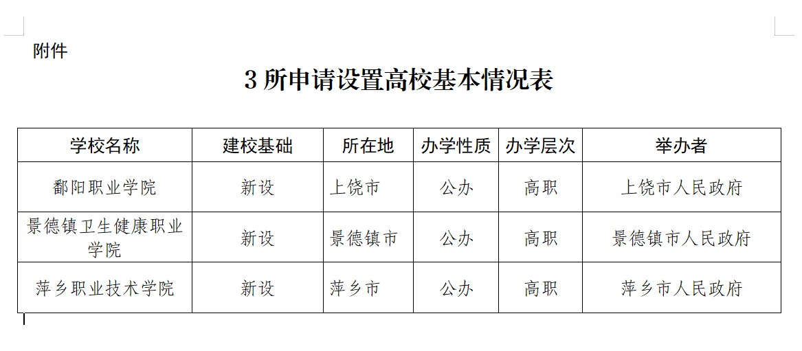 这三所高校的设立是江西省落实“十四五”高等学校设置规划的具体举措,将进一步提升我省高等职业教育的覆盖面和适应性。