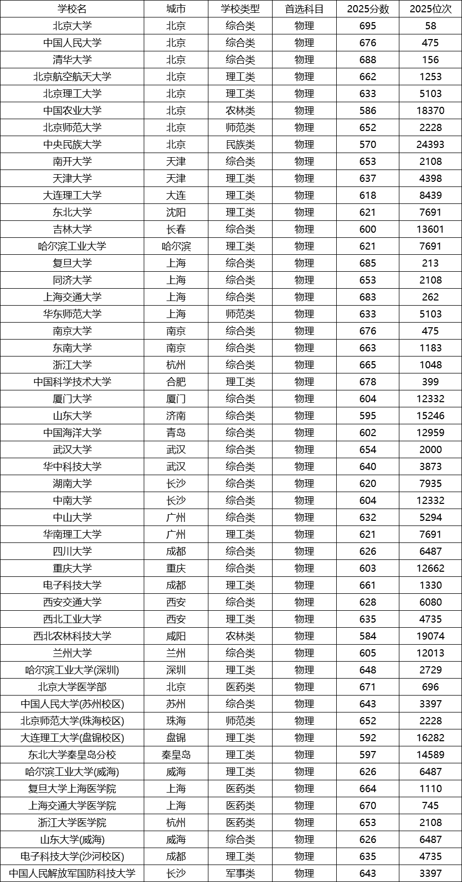 总体来看,物理类考生若想稳上985,建议目标分数定在600分以上;若分数在570分至600分之间,可重点考虑民族类、农林类或部分异地校区。