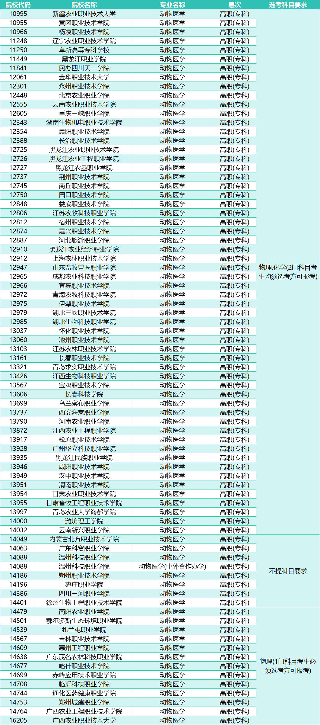 绝大多数本科院校的动物医学专业都要求考生必须同时选考物理和化学方可报考。