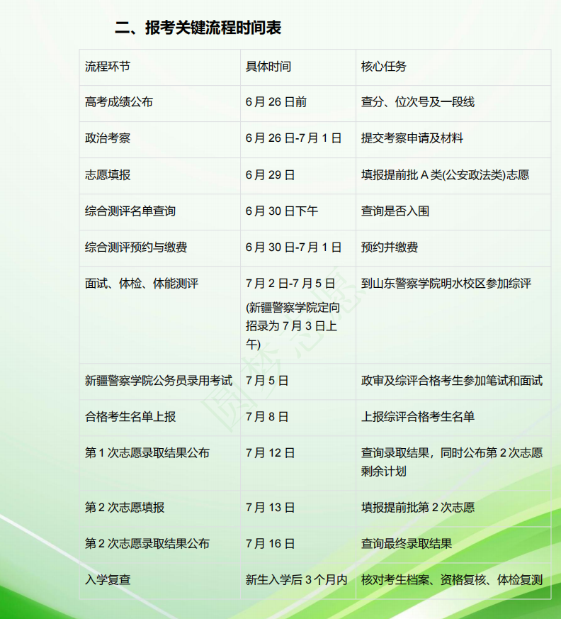 一、山东警校提前批报考时间流程图