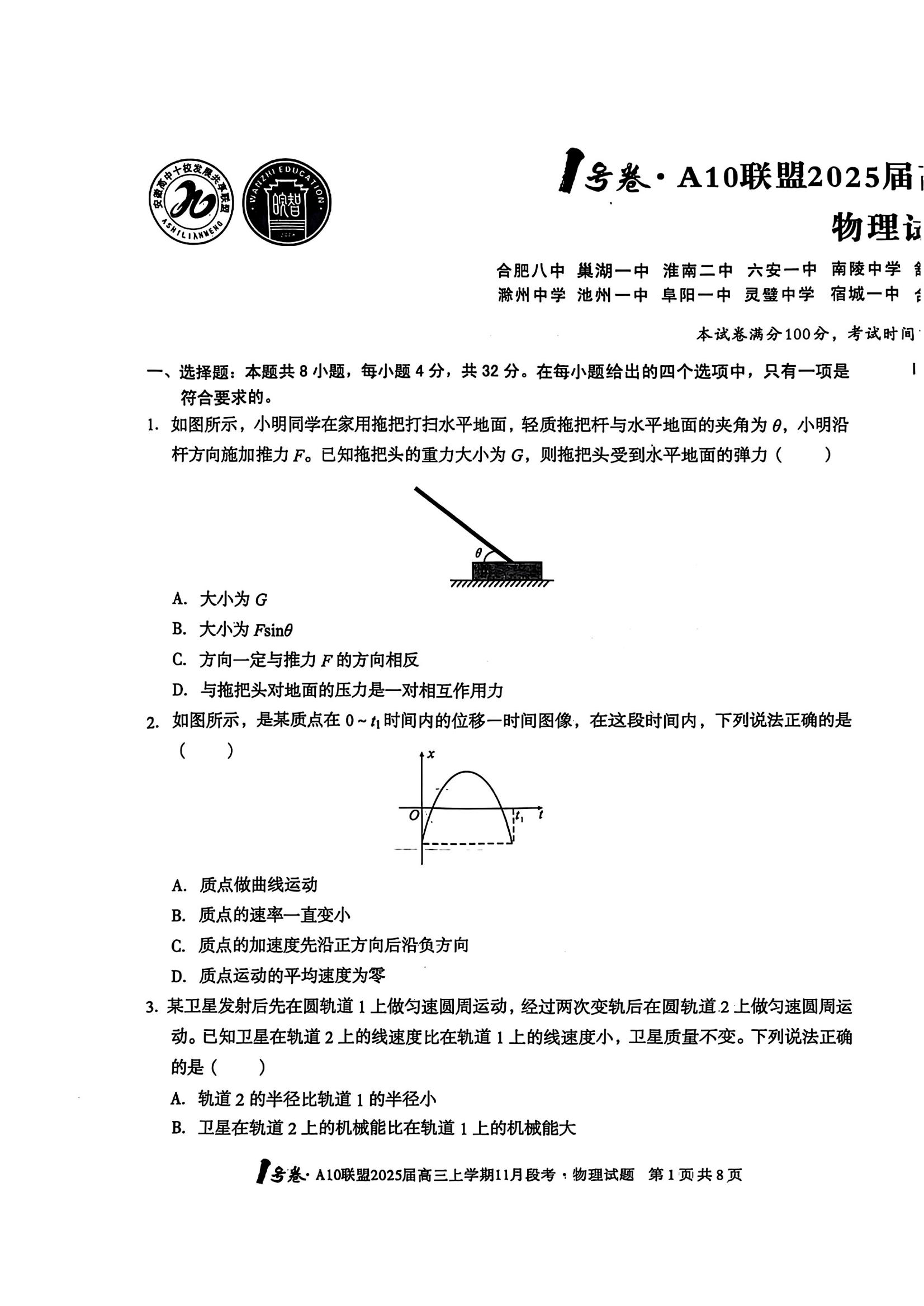 2025安徽A10联盟高三11月段考于2024年11月14日-15日举行,包括了语数外三门必考科目,物理、历史两门首选科目,以及政治、地理、生物和化学四门再选科目。此次考试难度中等偏上,主要是为了检验学生高三上学期的知识掌握情况。以下是各科试卷真题及答案的全解析。