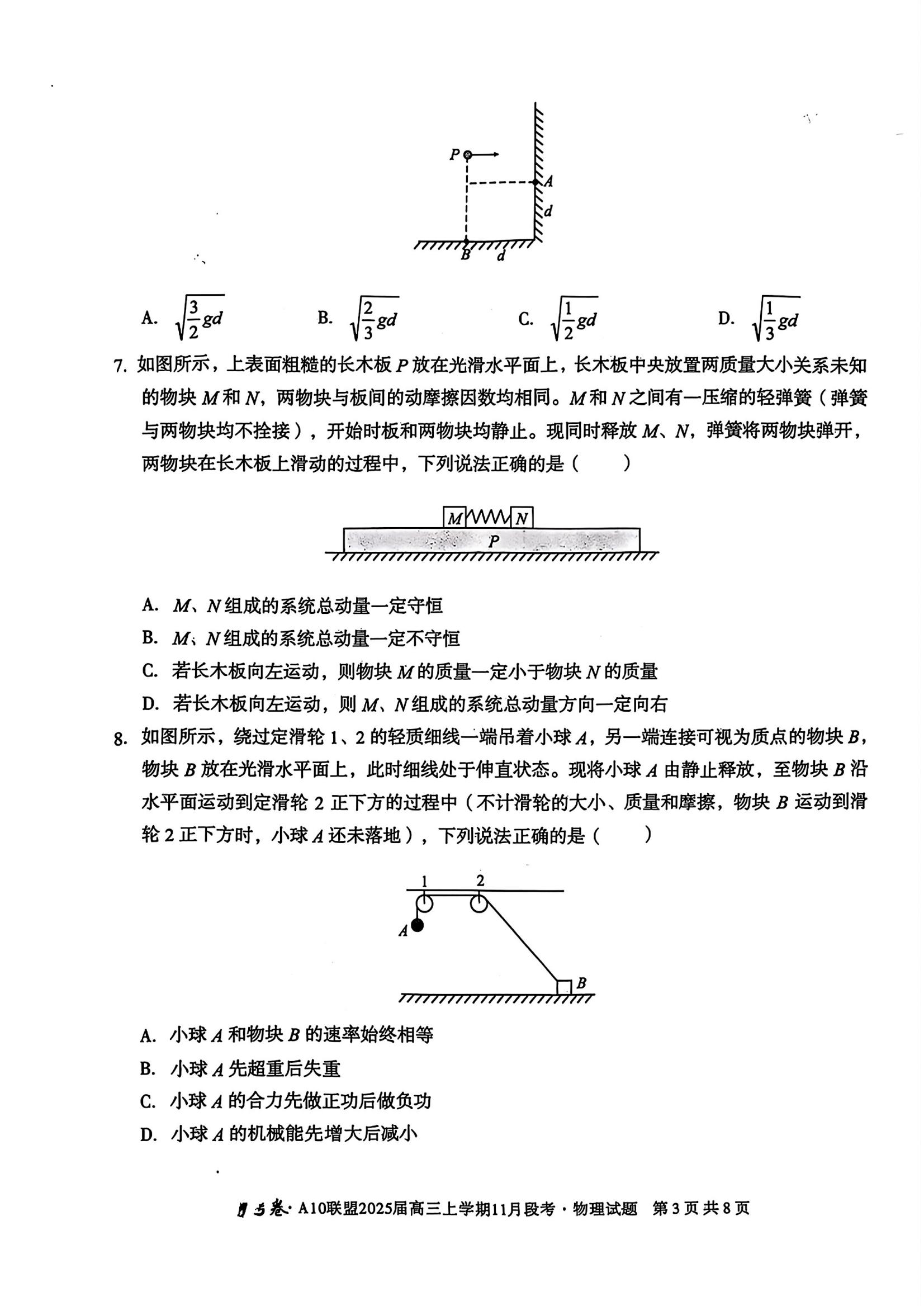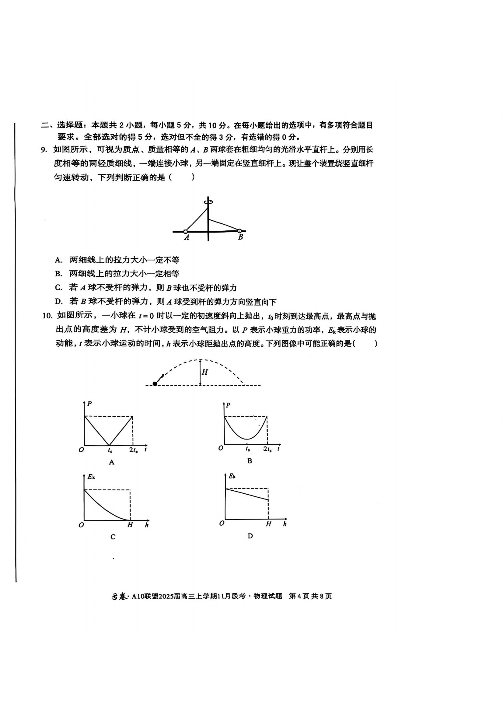 一、2025安徽A10联盟高三11 月段考答案全解析