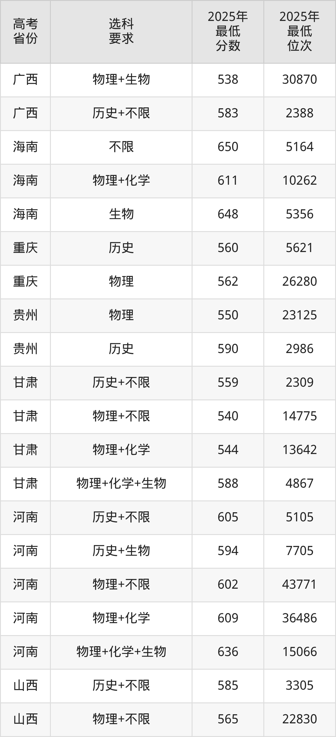 在2025年江西高考物理类招生时,985收分最低的是重庆大学第5Y1组(预科班),最低分是538分、位次是44245位。再看南昌大学,2025年在江西物理类的最低录取分数线是545分,最低位次是38862位。