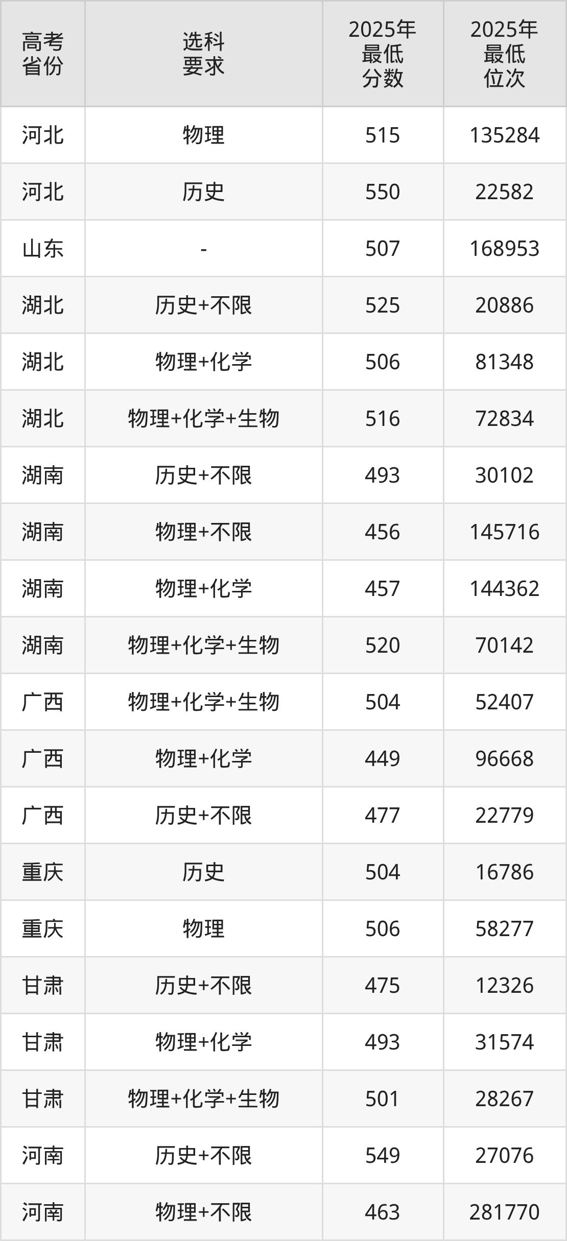 在2025年河北高考物理类招生时,211收分最低的是北京体育大学,最低分是506分、位次是150409位。再看西藏民族大学,2025年在河北物理类的最低录取分数线是515分,最低位次是135284位。