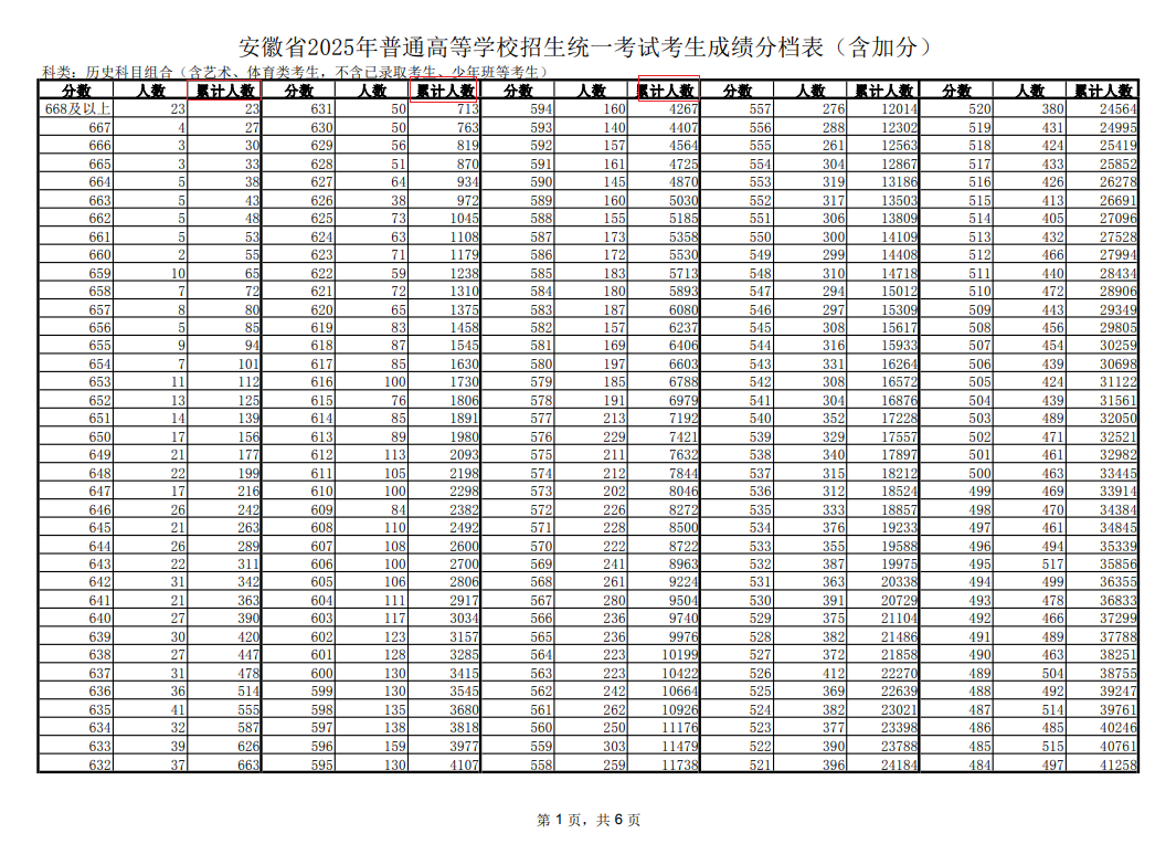 需要找到2025年安徽省高考的《一分一段表》。这份表格通常在省教育招生考试院官网公布,容易查找。