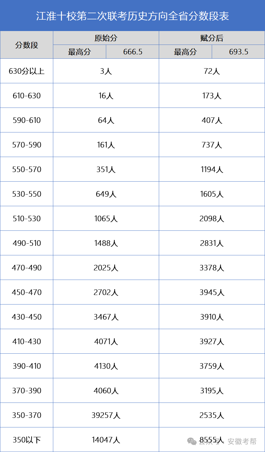 2026届江淮十校联考中,物理类和历史类的总分划线如下: