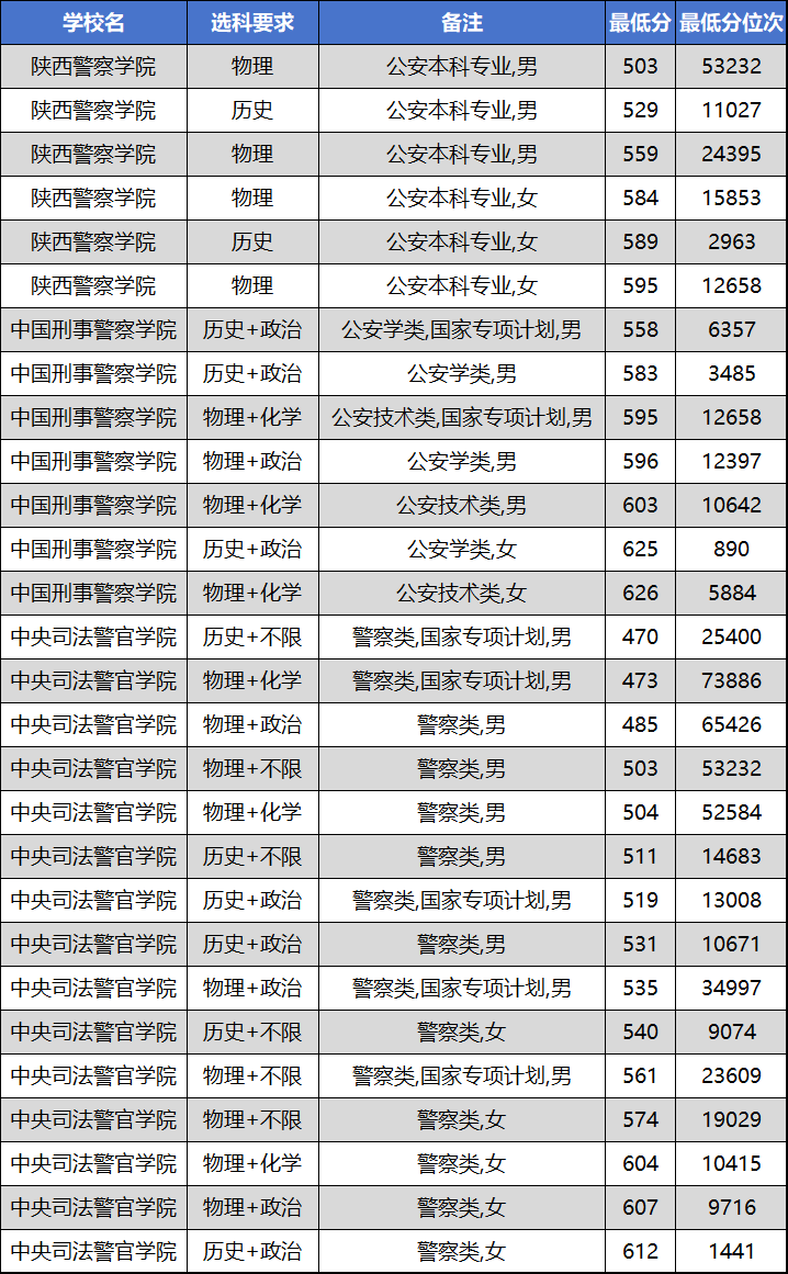 录取分数整体处于高位。公安技术类专业(物理+化学)男生最低603分(位次10642),女生高达626分(位次5884)。