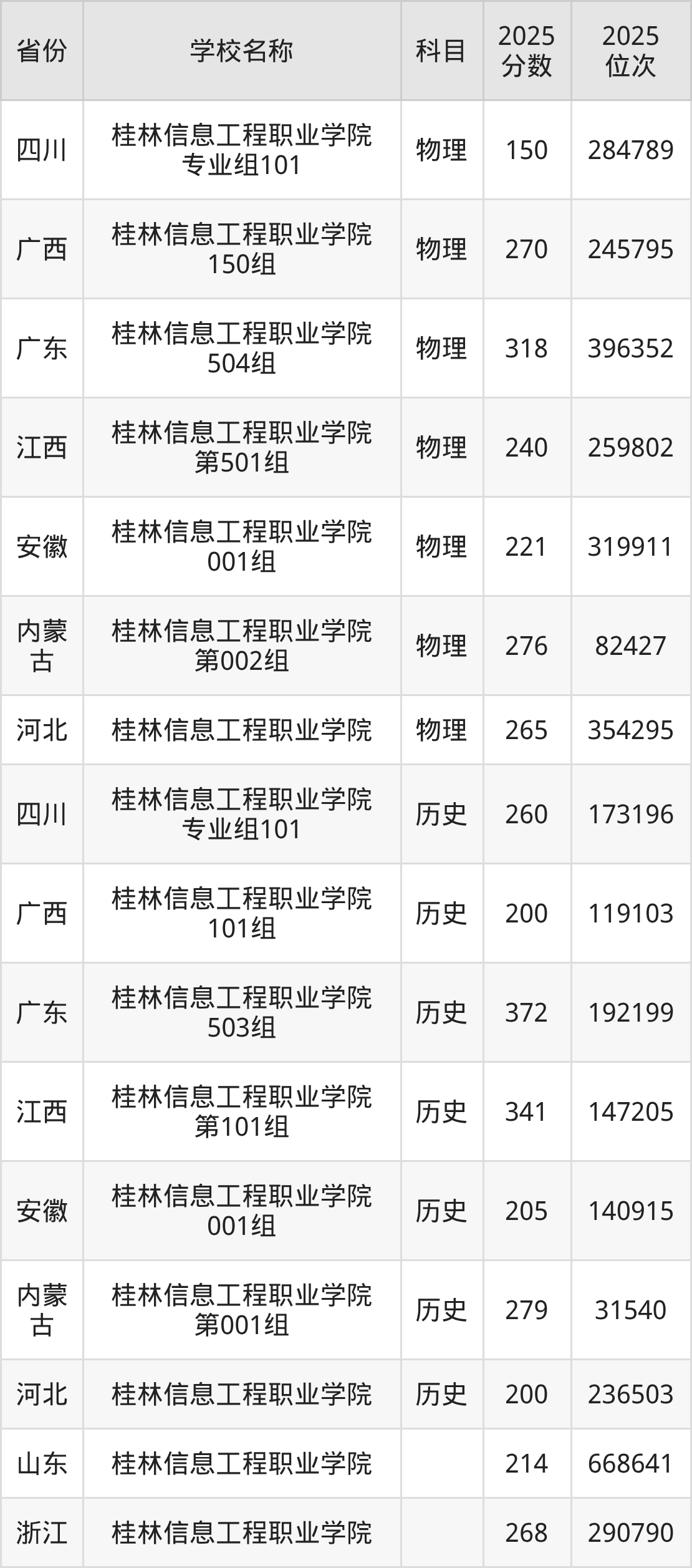 一、2025桂林信息工程职业学院录取分数线