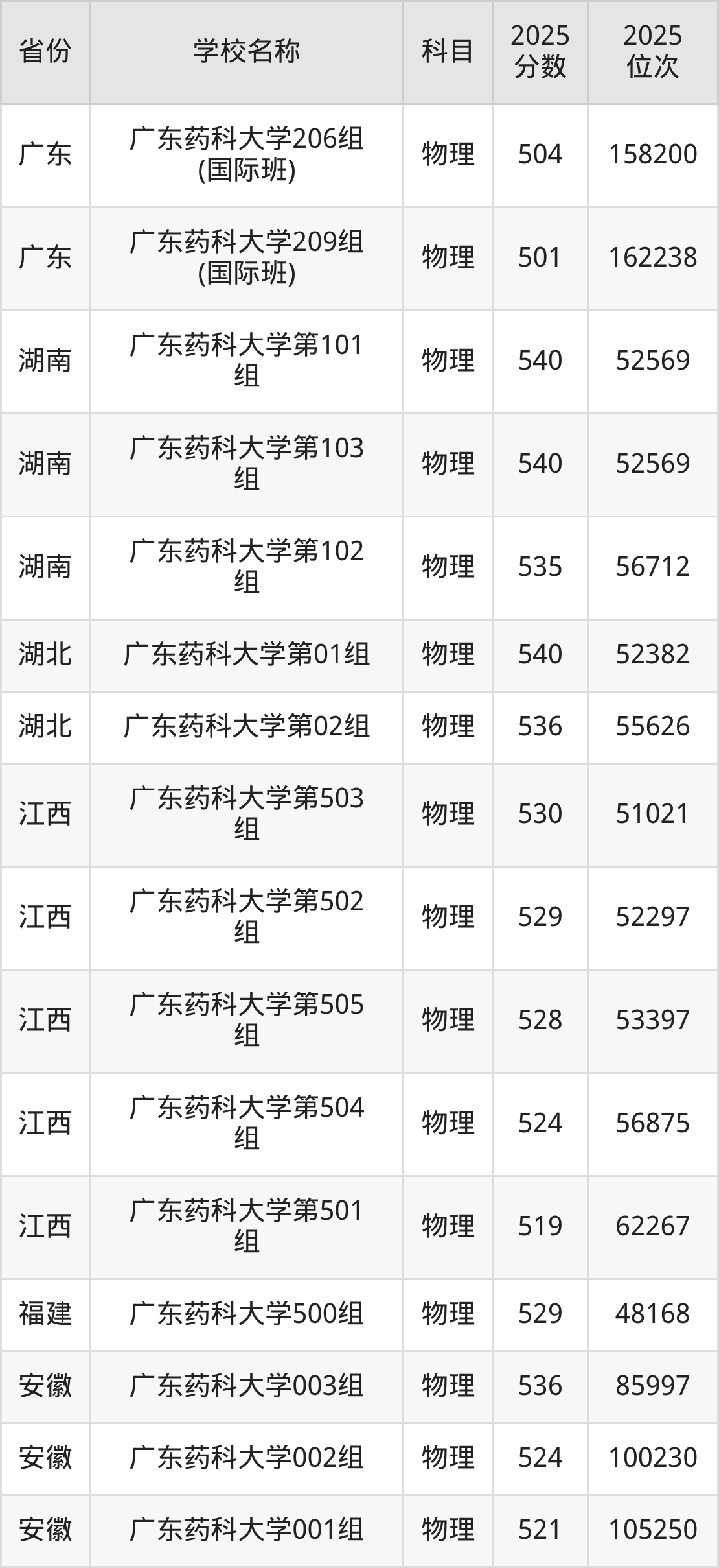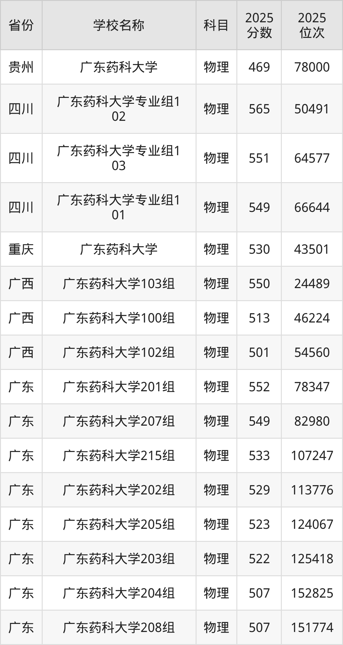 广东药科大学2025年有10个专业组面向广东省内首选了物理科目的考生招生: