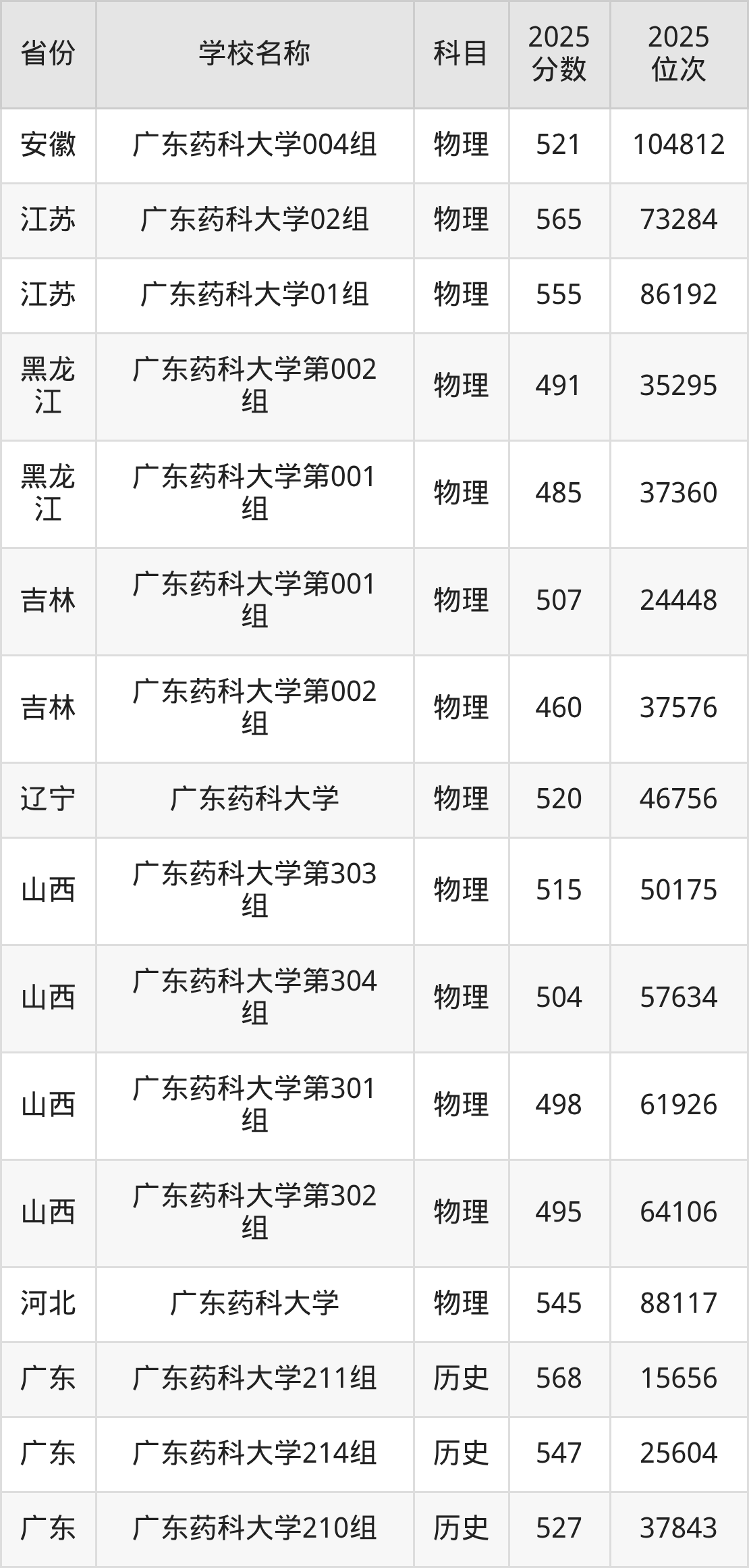 一、2025广东药科大学录取分数线