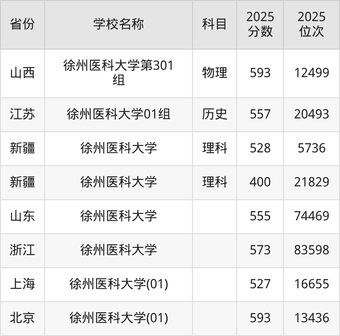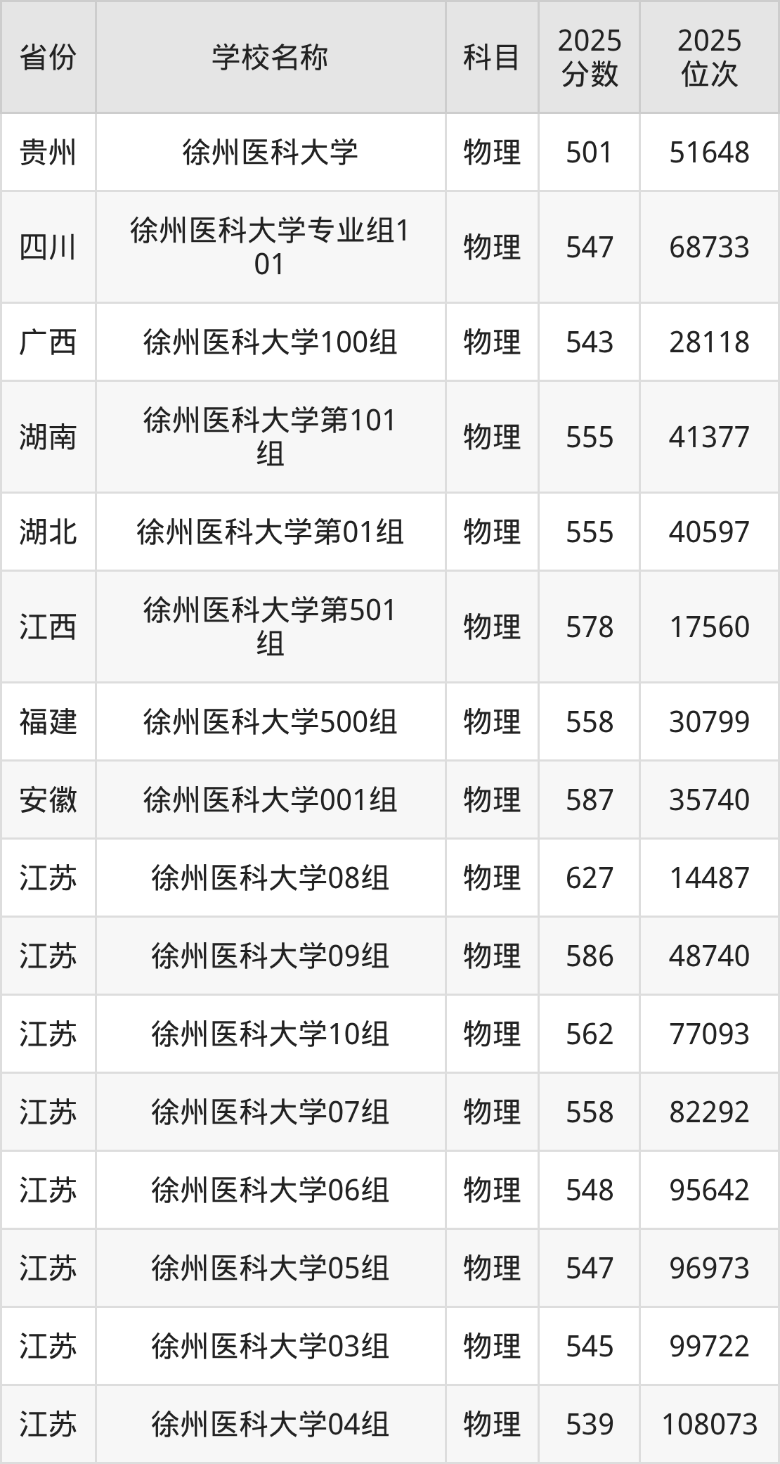徐州医科大学2025年有8个专业组面向江苏省内首选了物理科目的考生招生: