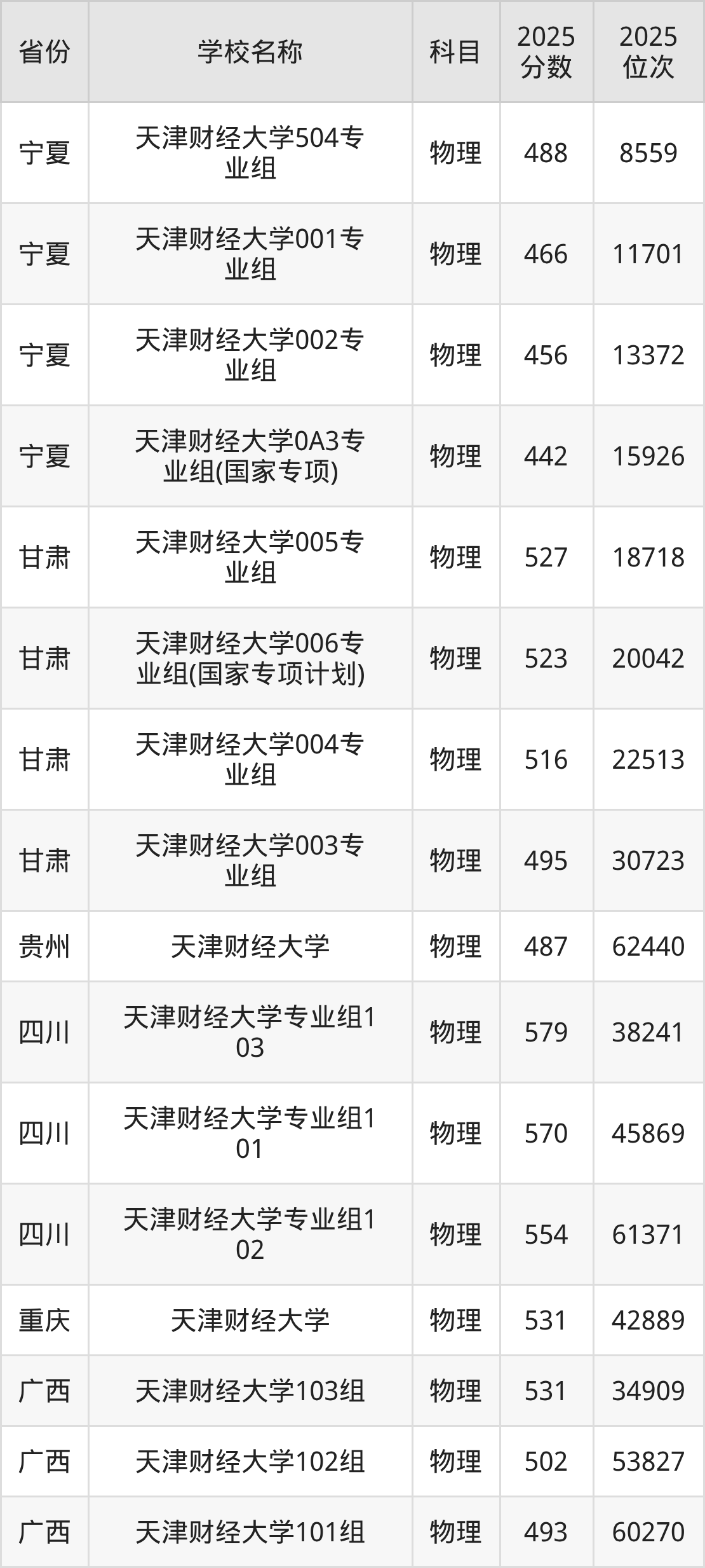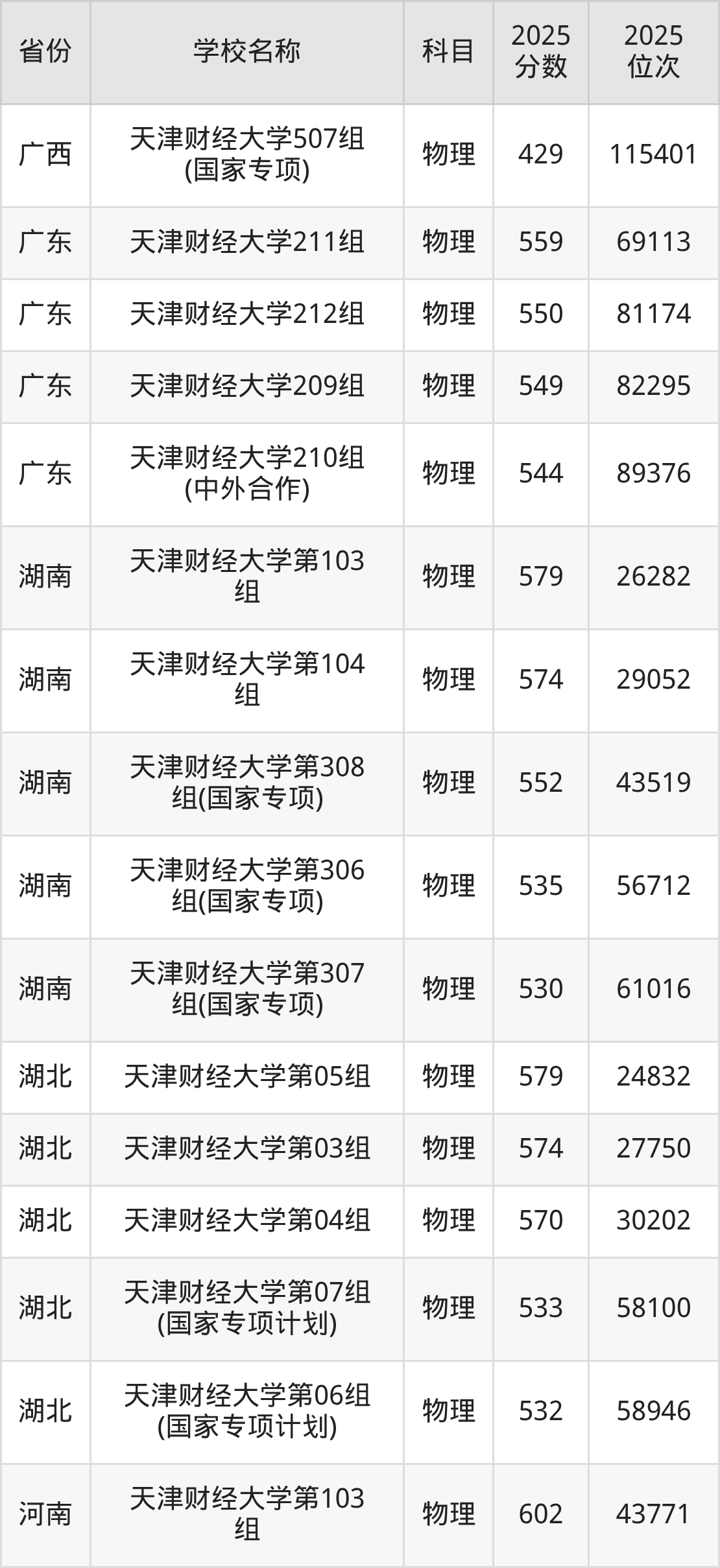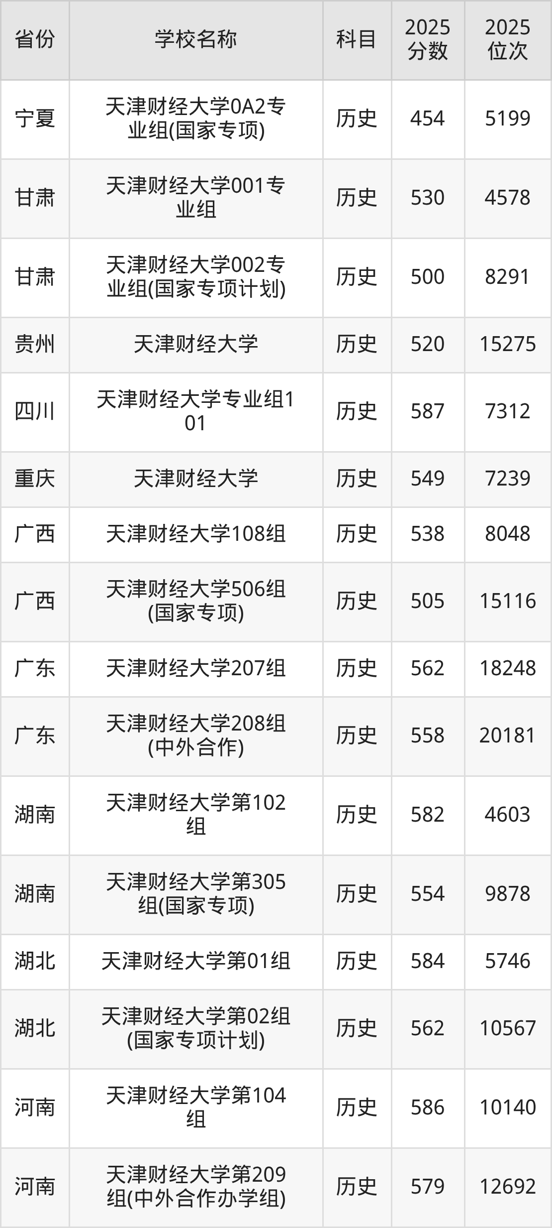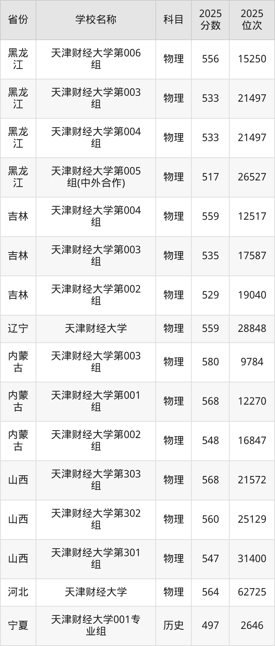 二、天津财经大学各专业录取分数线