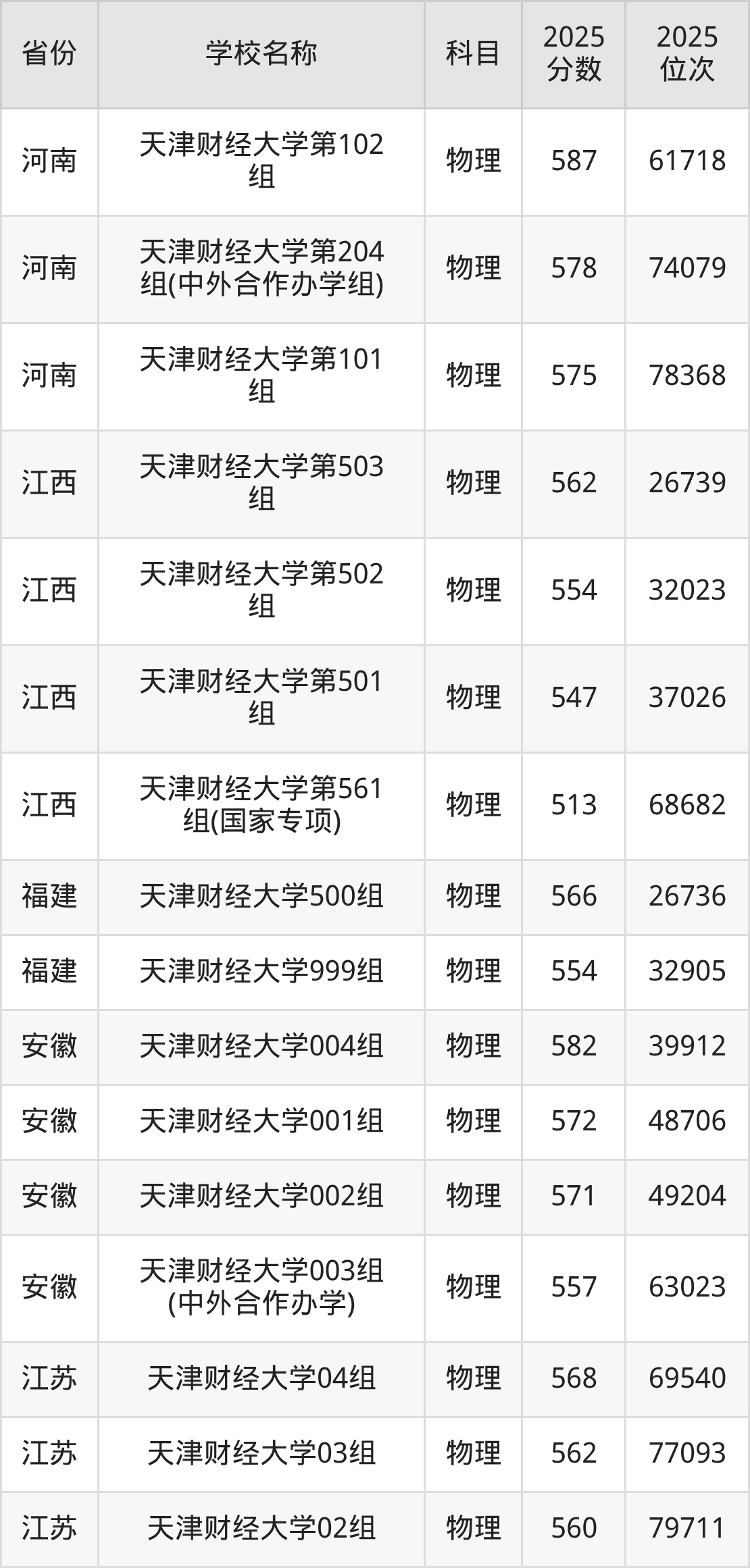 4、金融学类专业:2025年最低574分、最低位次是10991
