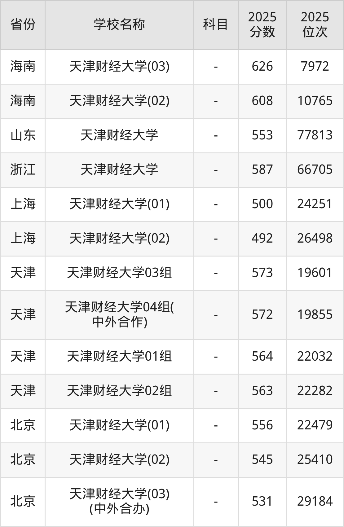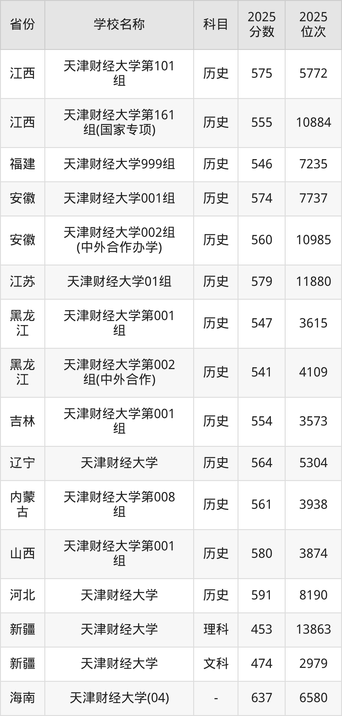 一、2025天津财经大学录取分数线