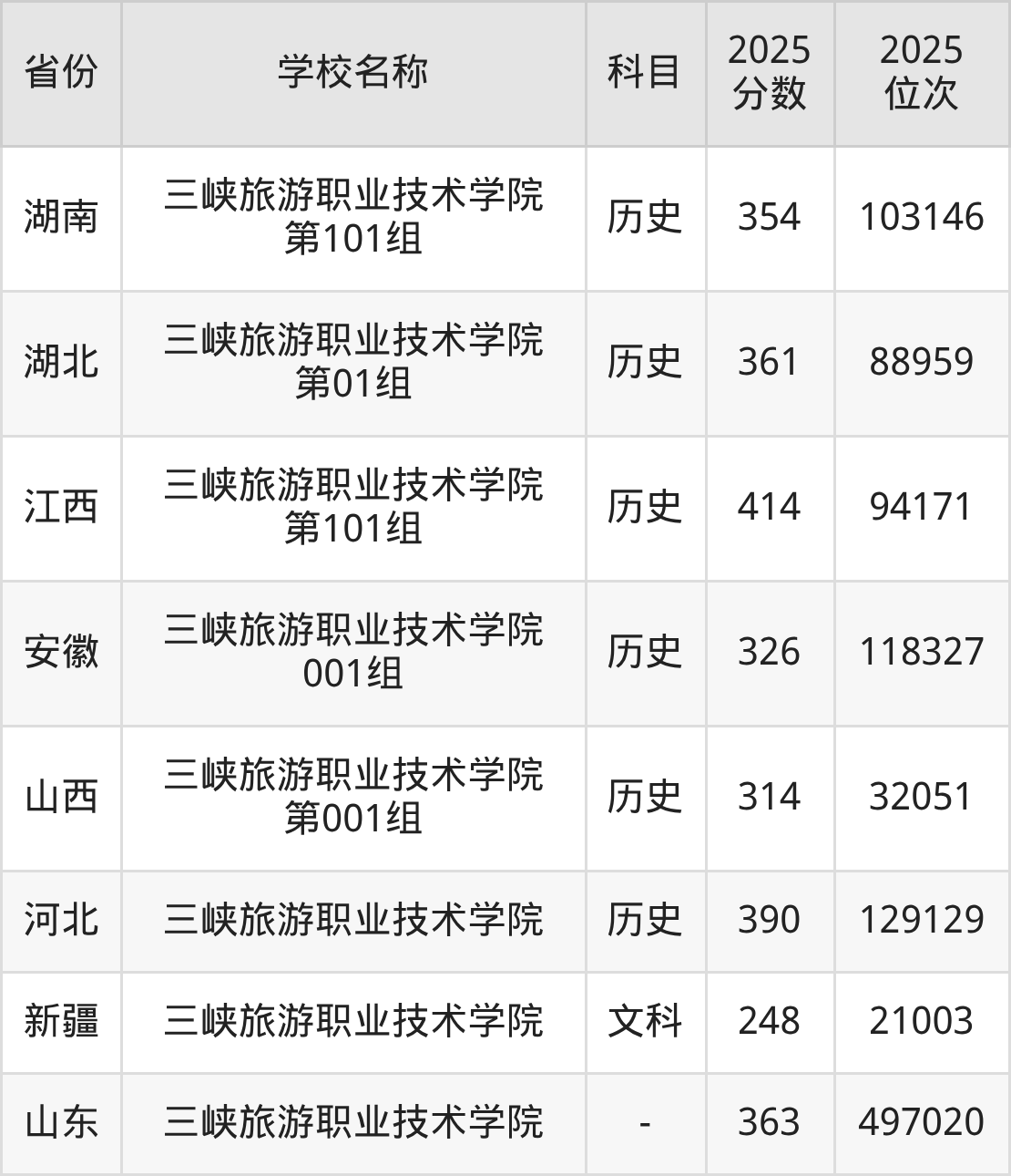 三峡旅游职业技术学院2025年有1个专业组面向湖北省内首选了历史科目的考生招生: