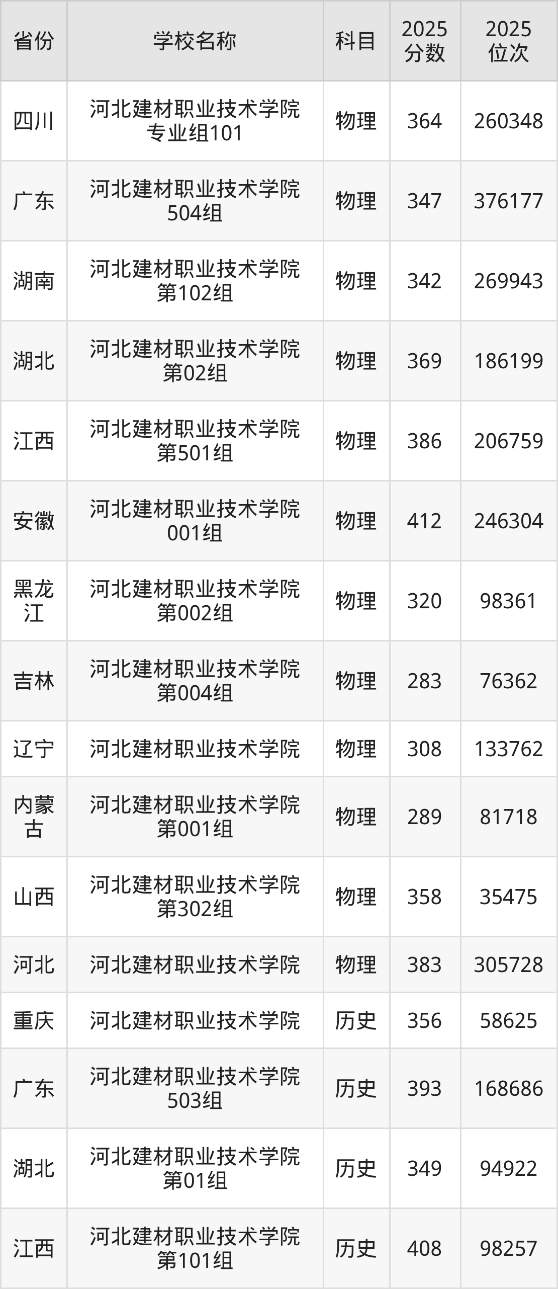 二、河北建材职业技术学院各专业录取分数线