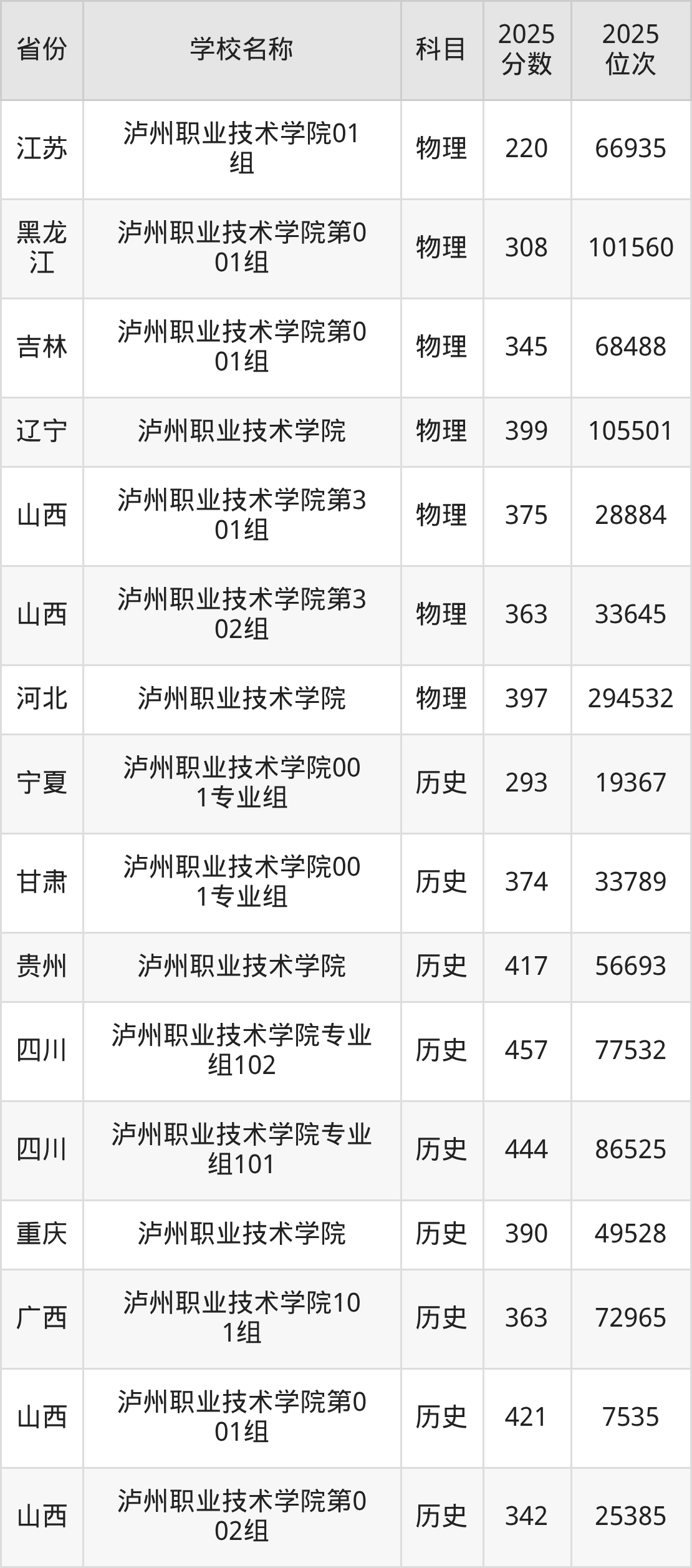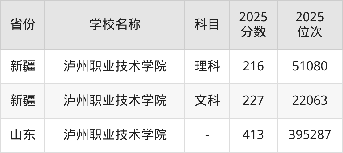一、2025泸州职业技术学院录取分数线