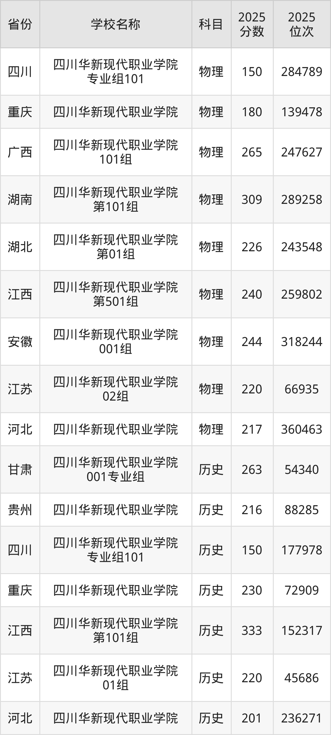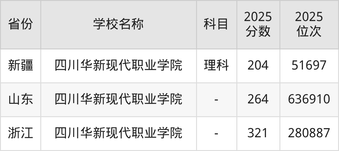 一、2025四川华新现代职业学院录取分数线