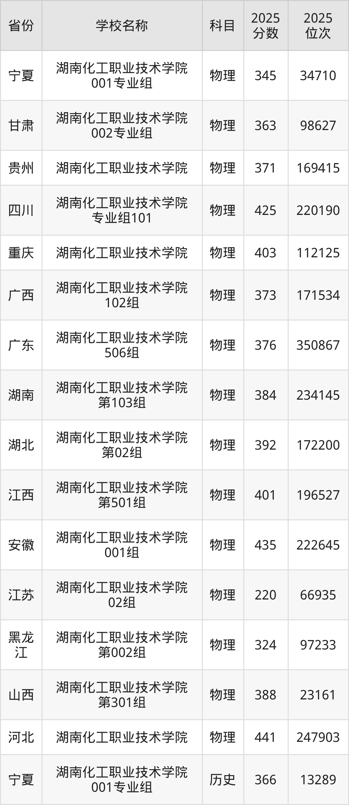 湖南化工职业技术学院2025年有1个专业组面向湖南省内首选了物理科目的考生招生: