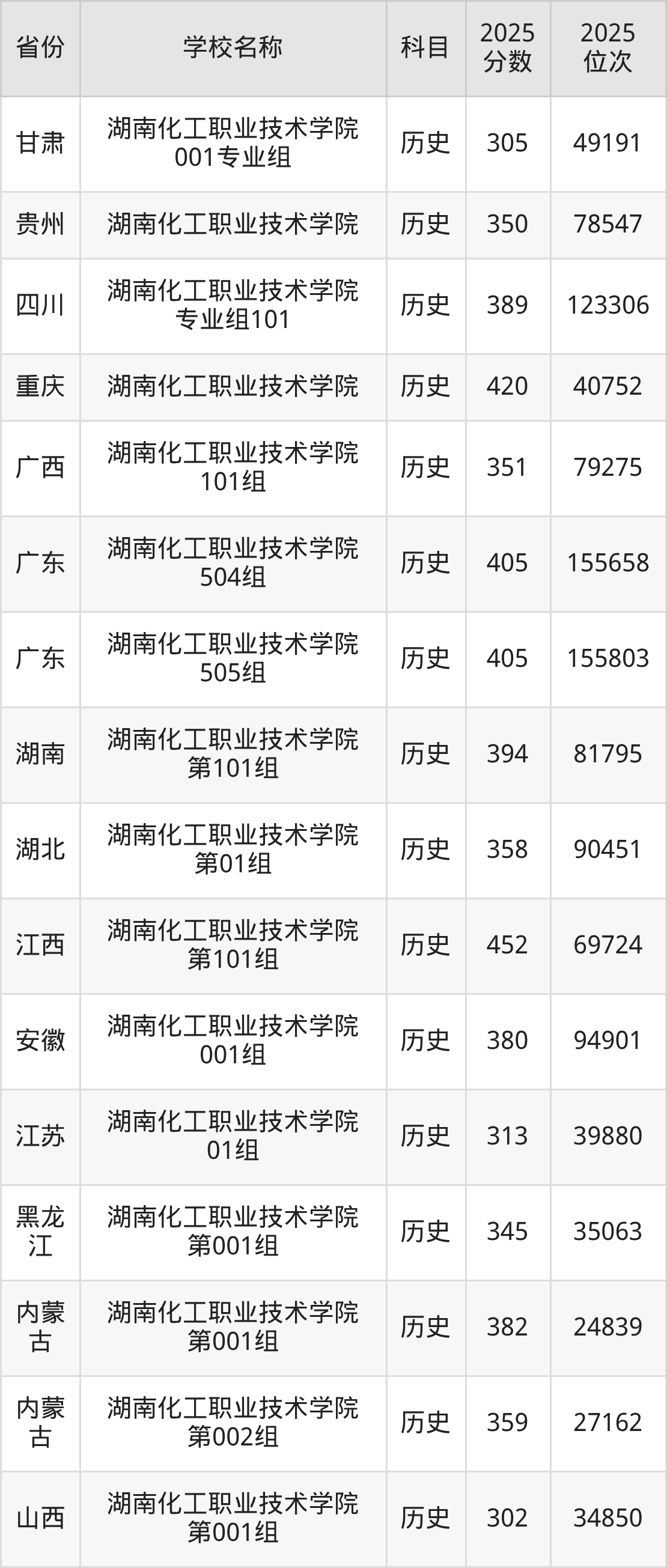 湖南化工职业技术学院2025年有1个专业组面向湖南省内首选了历史科目的考生招生: