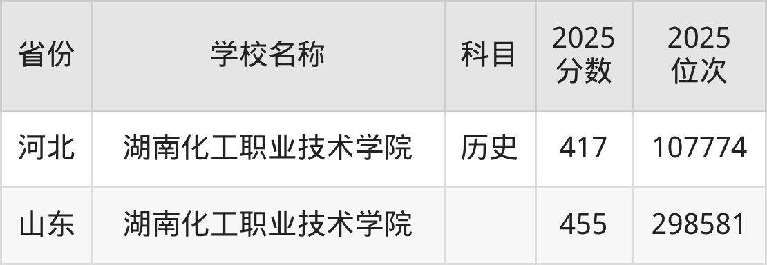 2025年湖南化工职业技术学院在全国各省专科的最低录取分数线在220~455分之间。山东高考生最低455分能上湖南化工职业技术学院、河北物理类高考生最低441分能上湖南化工职业技术学院……下文将展示湖南化工职业技术学院在全国17个高考省份中的专科最低投档录取分汇总!
