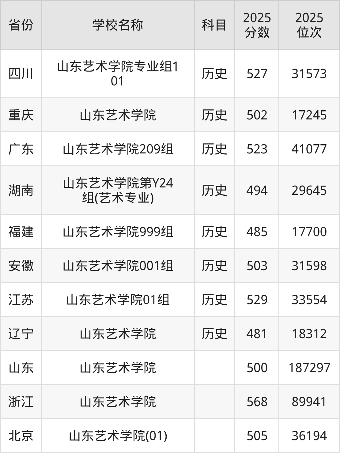 5、艺术史论专业:2025年最低501分、最低位次是184591