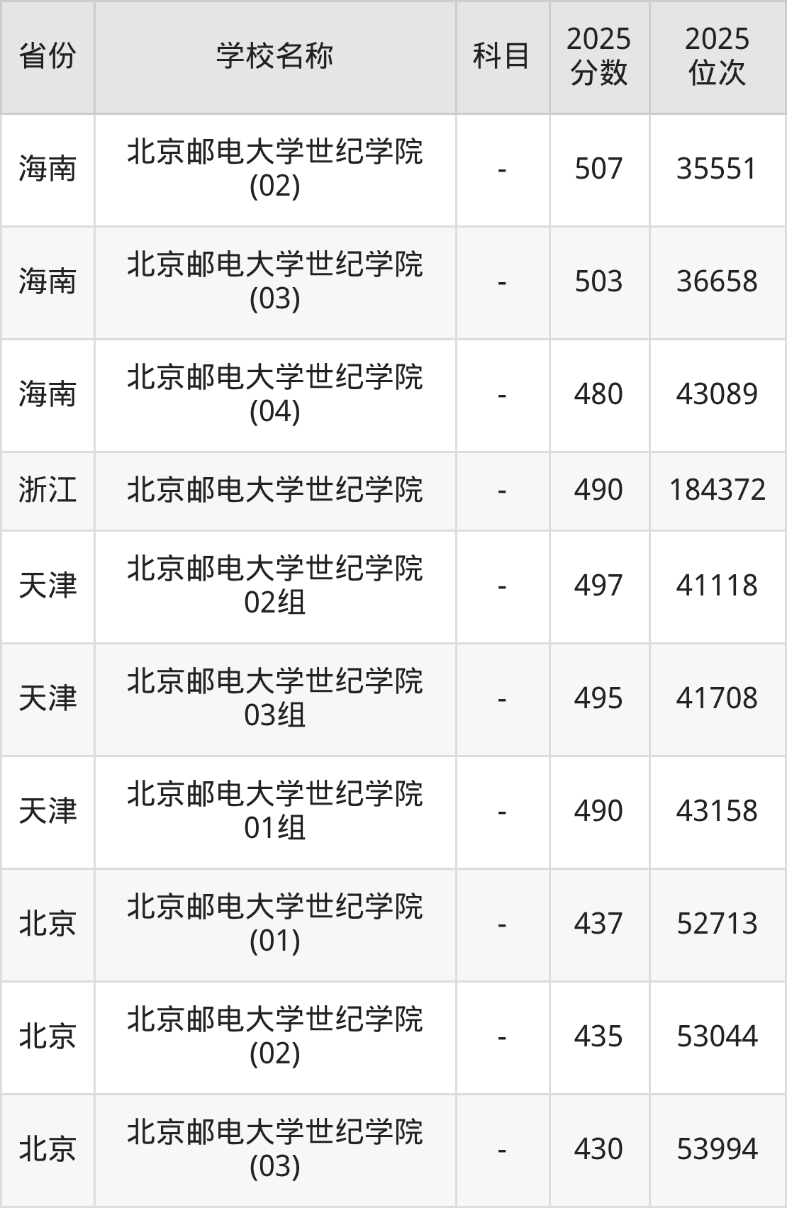 北京邮电大学世纪学院2025年有3个专业组面向北京市内的考生招生: