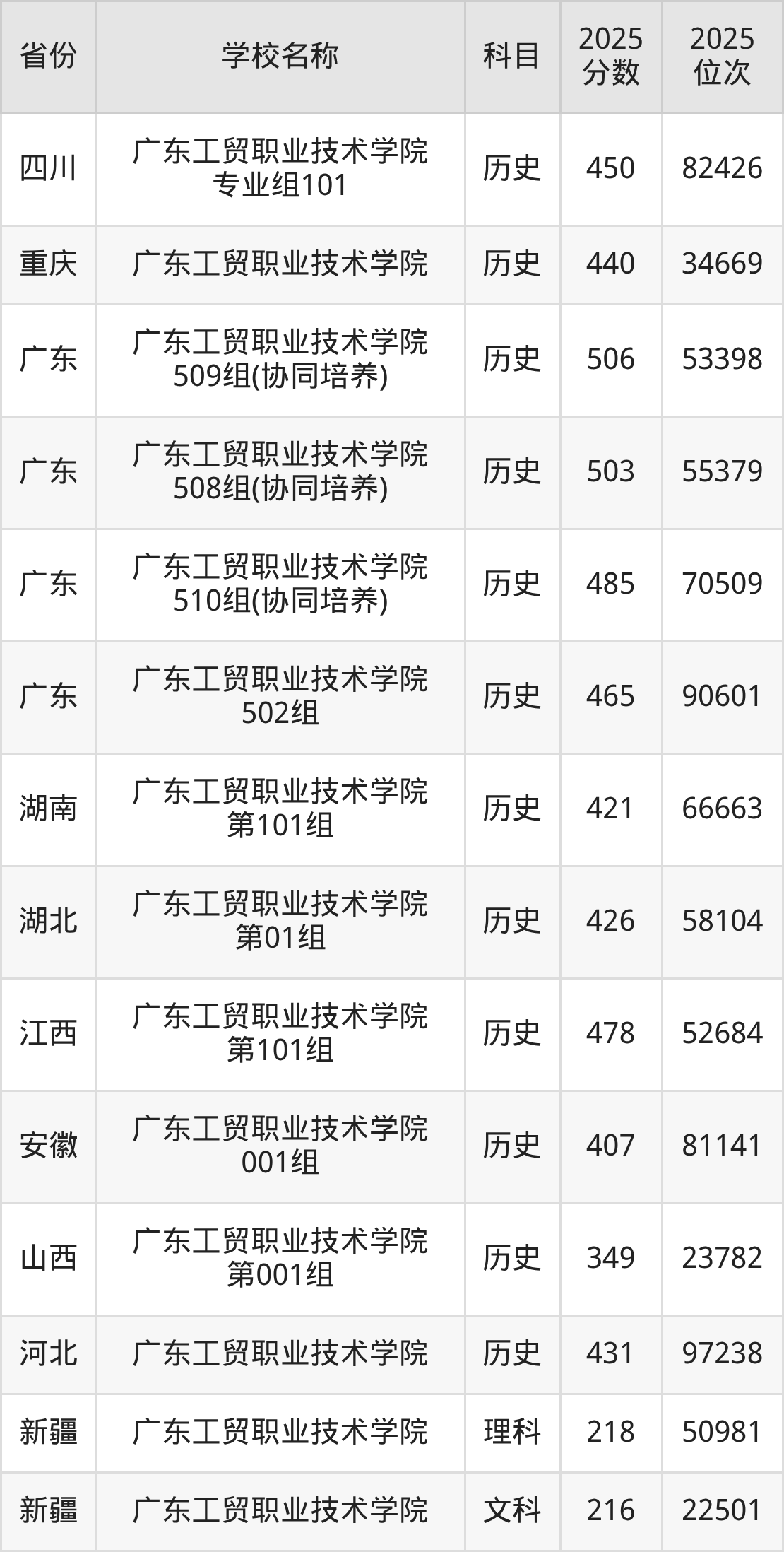 广东工贸职业技术学院2025年有4个专业组面向广东省内首选了历史科目的考生招生:
