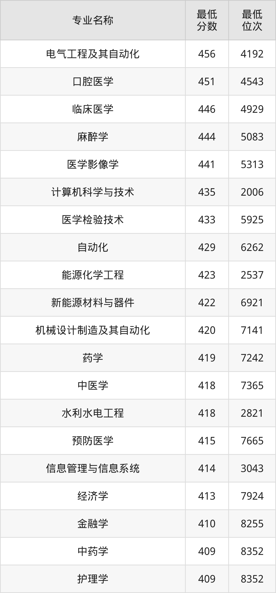 | 宁夏 | 理科第一批本 科 | —— | 462/404/440 |