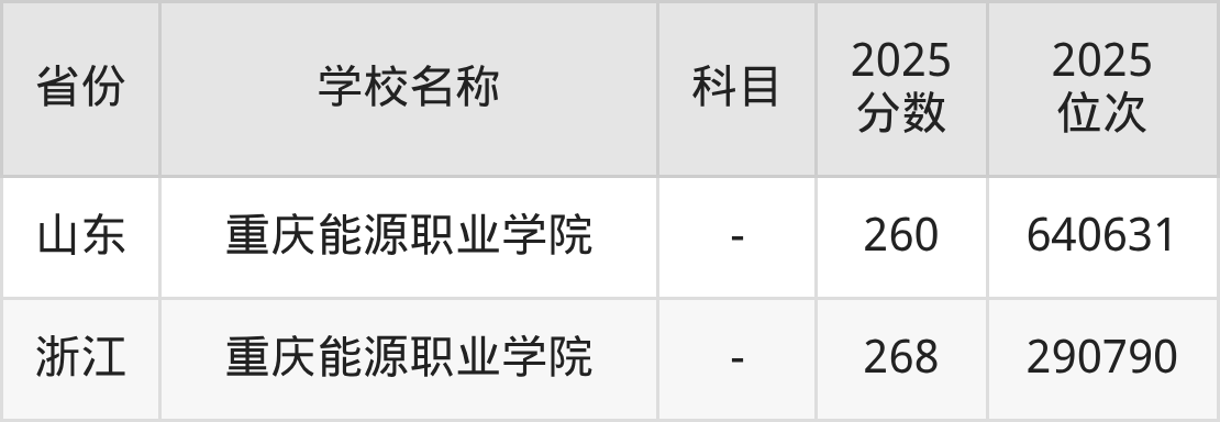 2025年重庆能源职业学院在全国各省专科的最低录取分数线在150~347分之间。浙江高考生最低268分能上重庆能源职业学院、广西物理类高考生最低266分能上重庆能源职业学院……下文将展示重庆能源职业学院在全国10个高考省份中的专科最低投档录取分汇总!