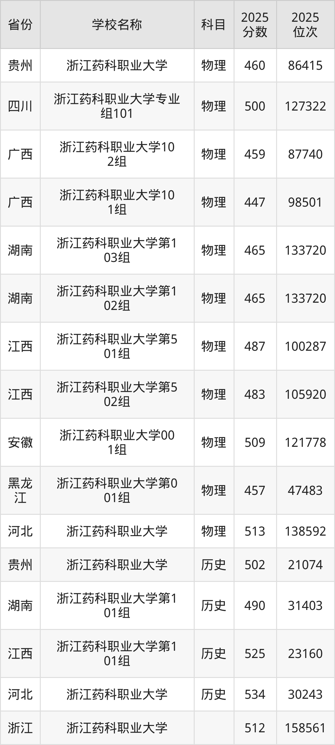 二、浙江药科职业大学各专业录取分数线