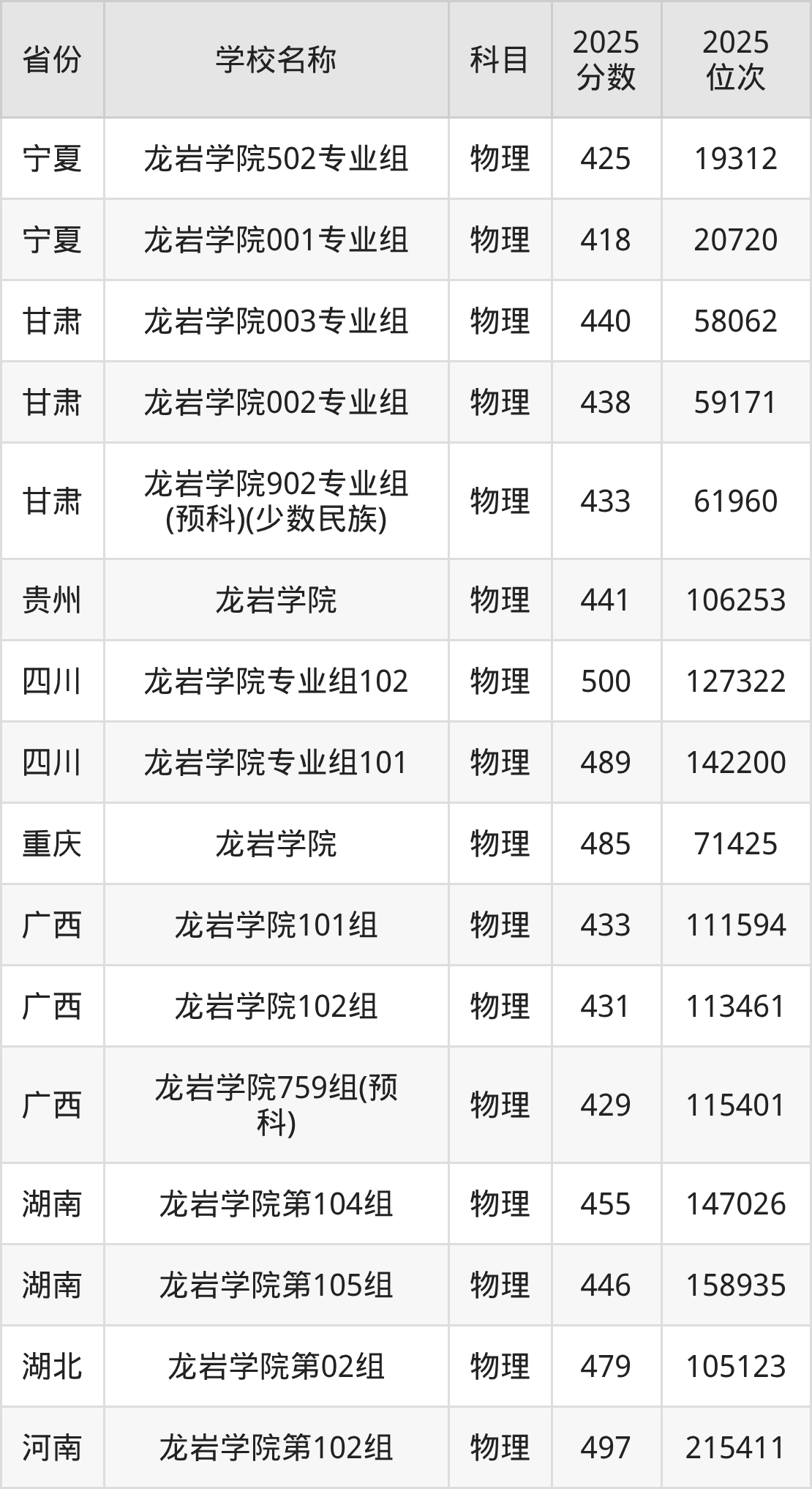 龙岩学院2025年有6个专业组面向福建省内首选了物理科目的考生招生: