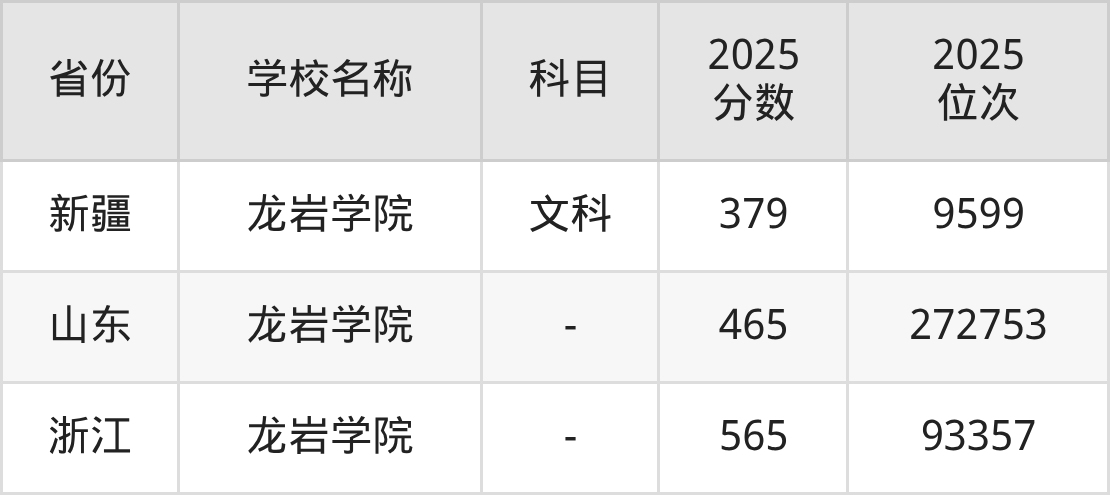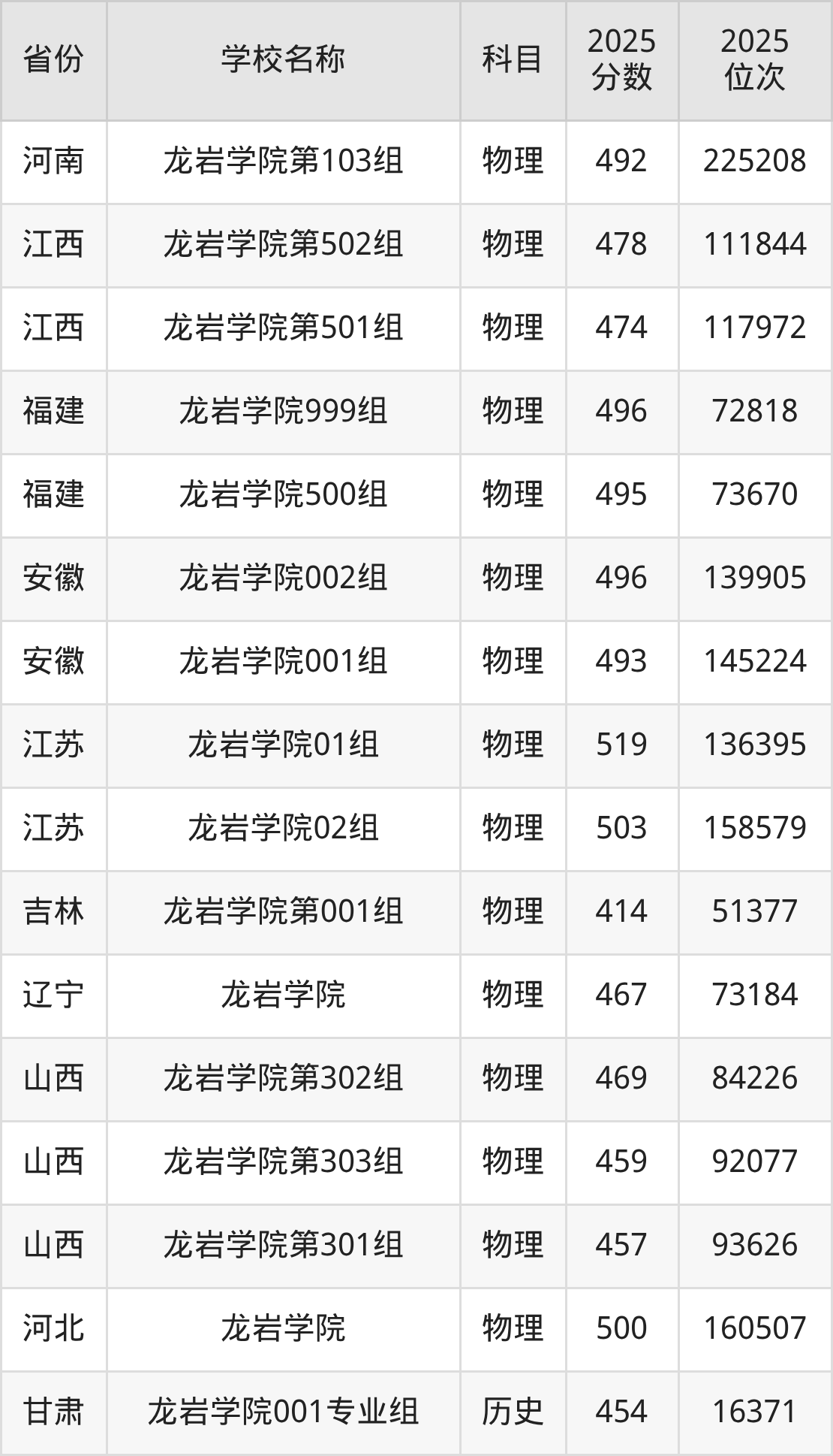再看福建高考2025年本科批次线,历史类是450分、物理类是441分。通过对比发现:龙岩学院2025年历史类最低分比本科线高47分,物理类最低分比本科线高54分。2026届福建高考生,可通过每一次模考划线,来判断自己的成绩是否有机会被龙岩学院录取。