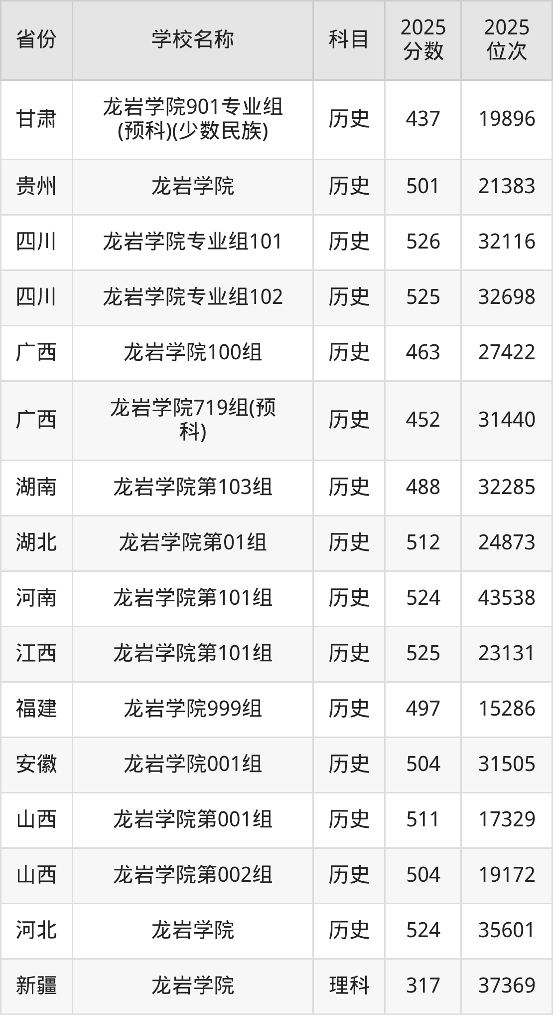 龙岩学院2025年有3个专业组面向福建省内首选了历史科目的考生招生: