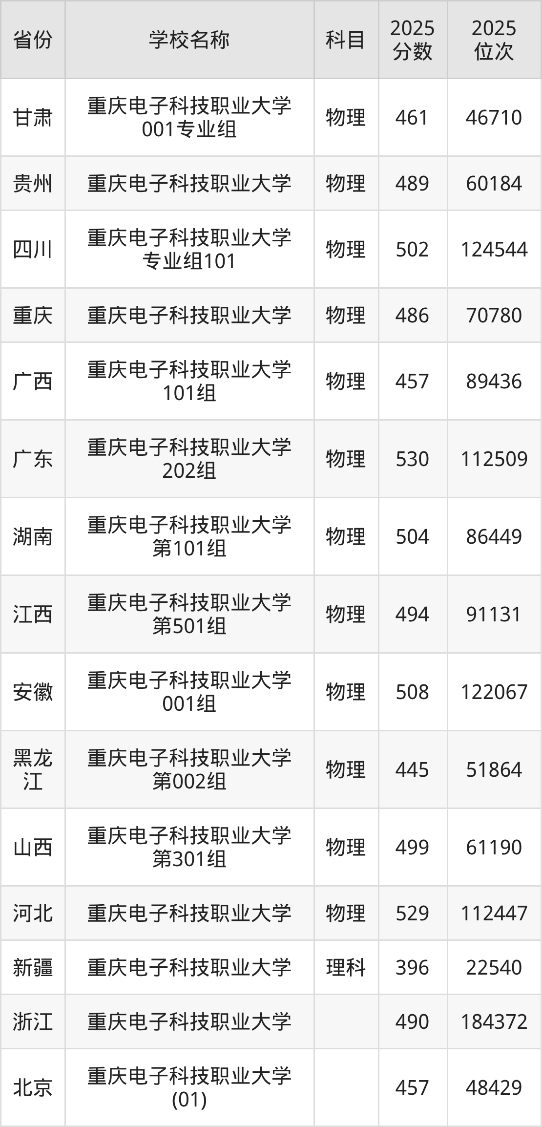 2025年重庆电子科技职业大学在全国各省本科的最低录取分数线在396~530分之间。广东物理类高考生最低530分能上重庆电子科技职业大学、河北物理类高考生最低529分能上重庆电子科技职业大学……下文将展示重庆电子科技职业大学在全国15个高考省份中的本科最低投档录取分汇总!