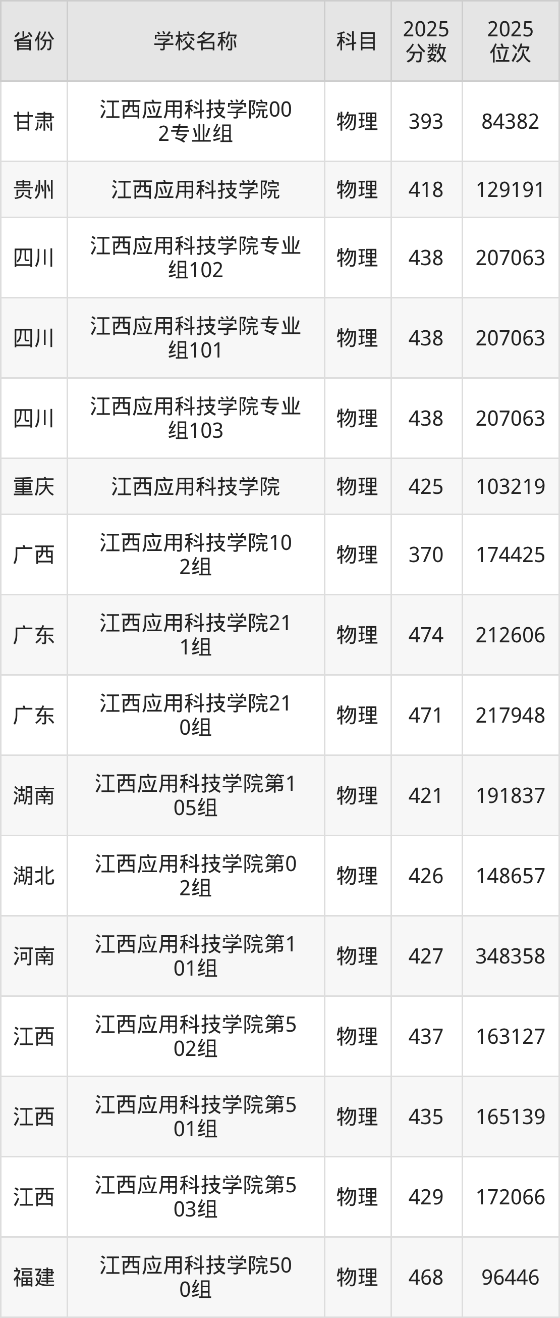 二、江西应用科技学院各专业录取分数线