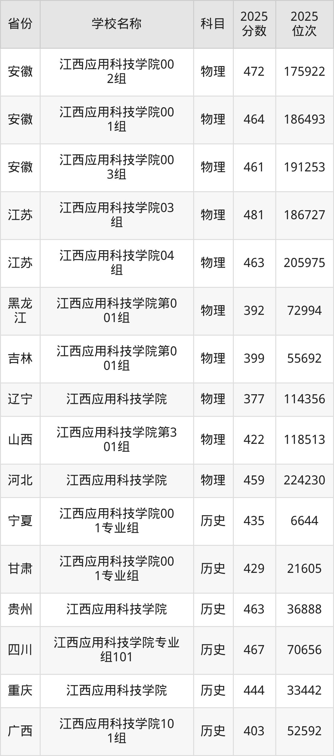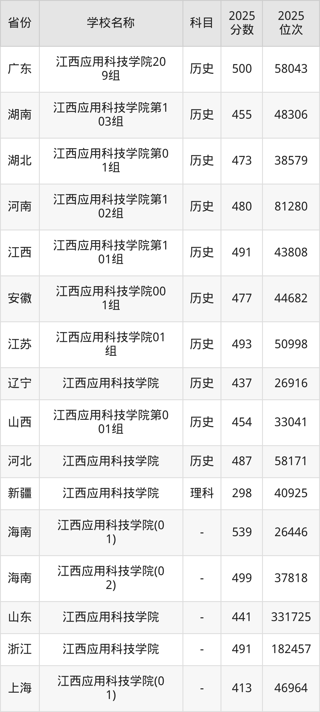 一、2025江西应用科技学院录取分数线