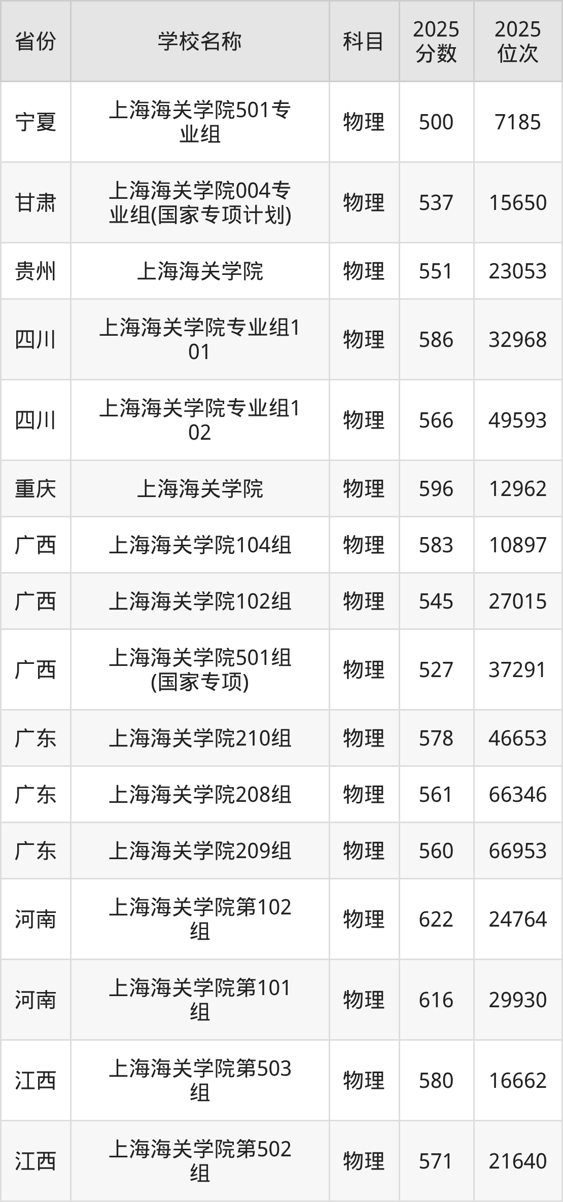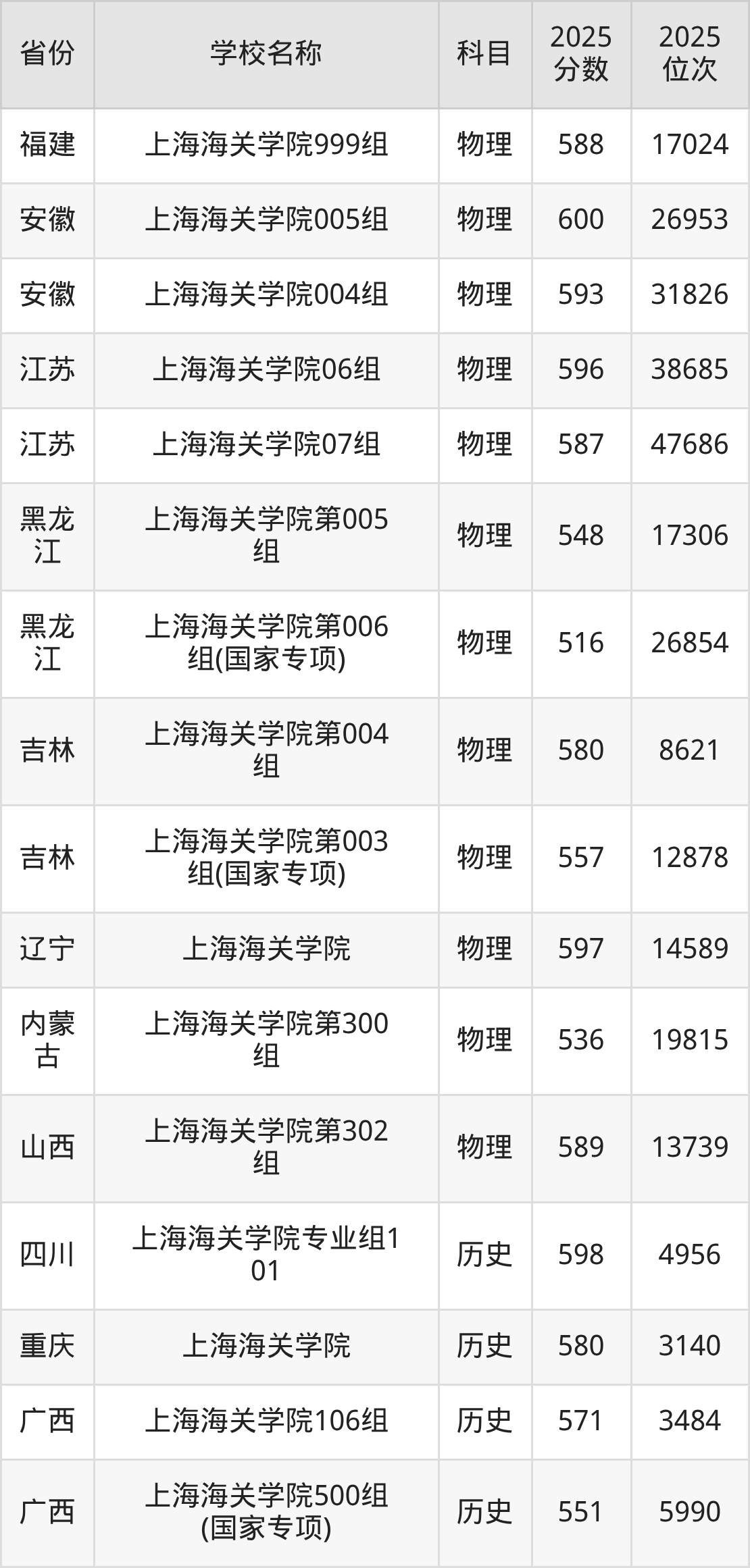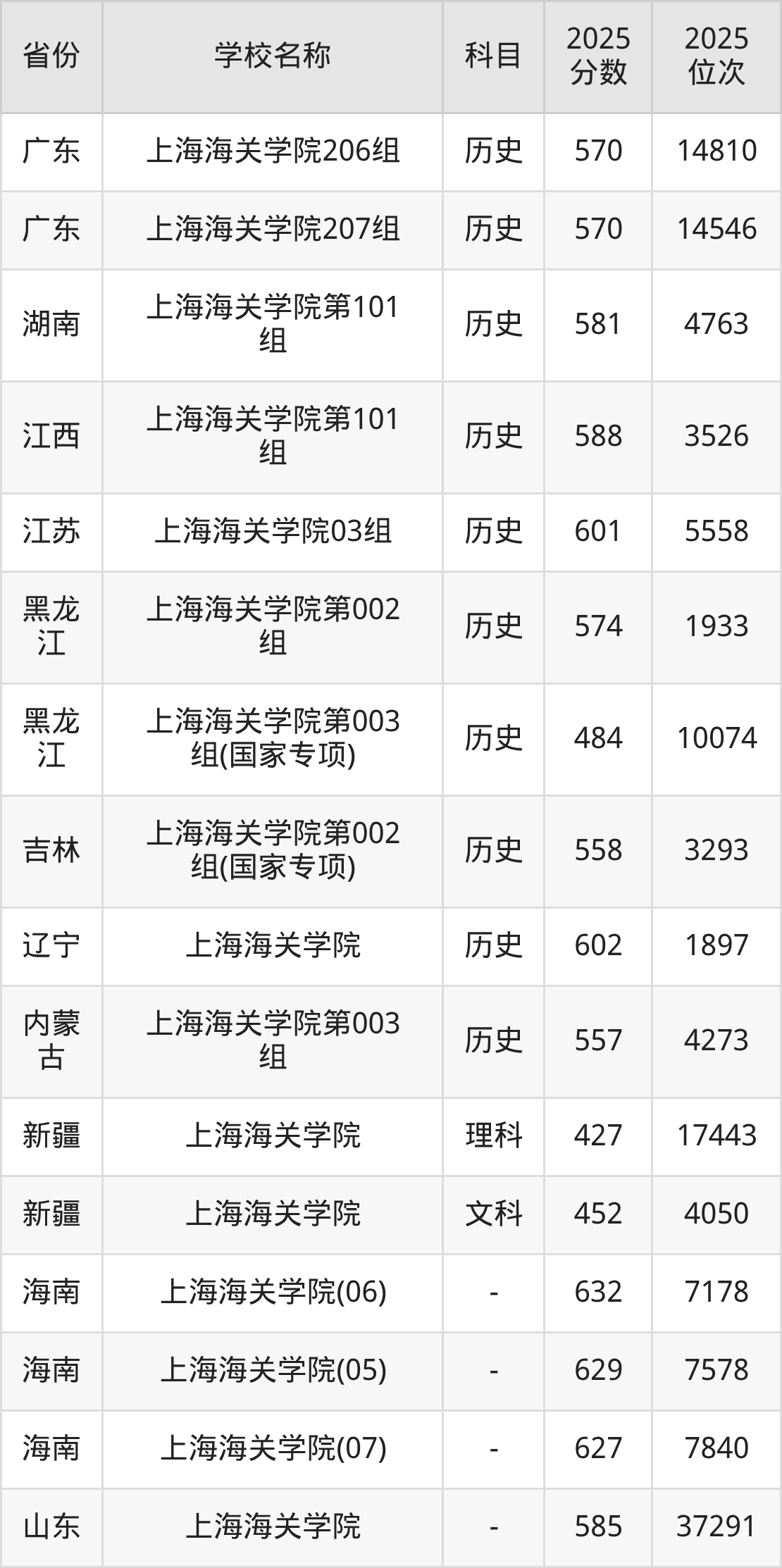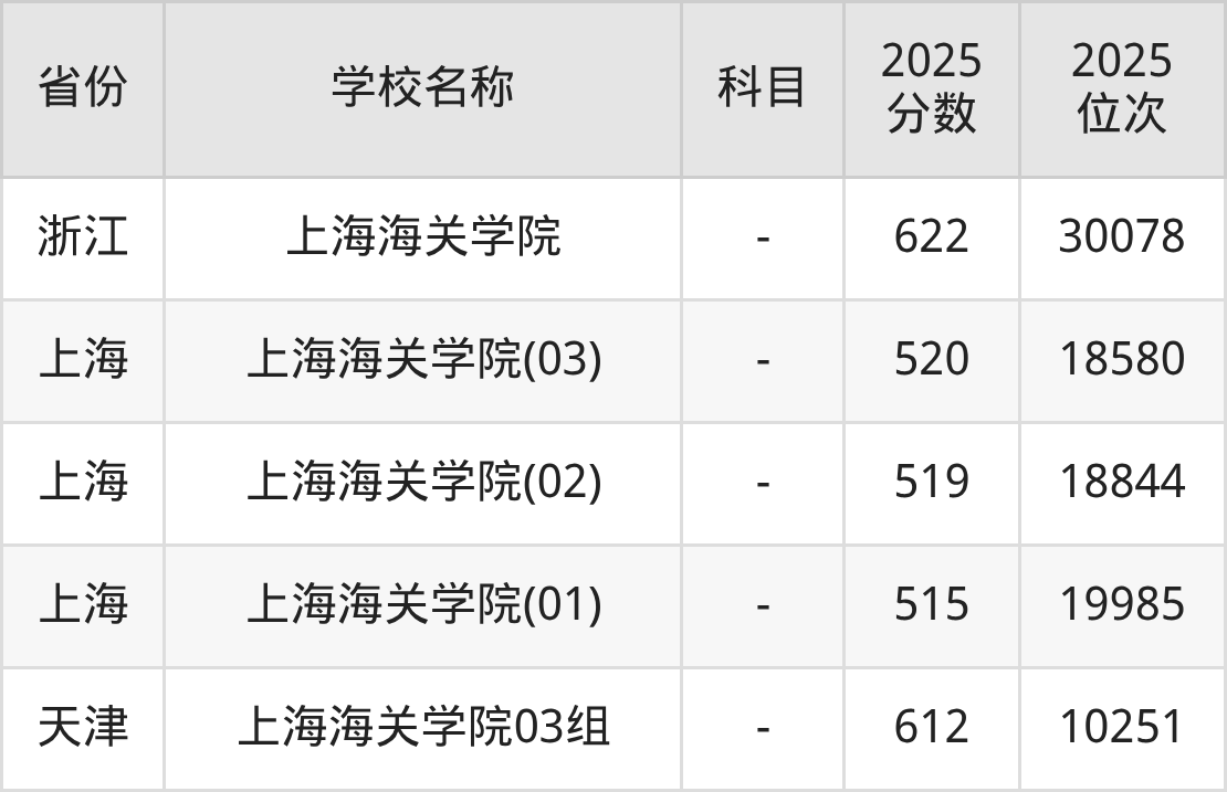 3、海关检验检疫安全专业:2025年最低568分、最低位次是6379
