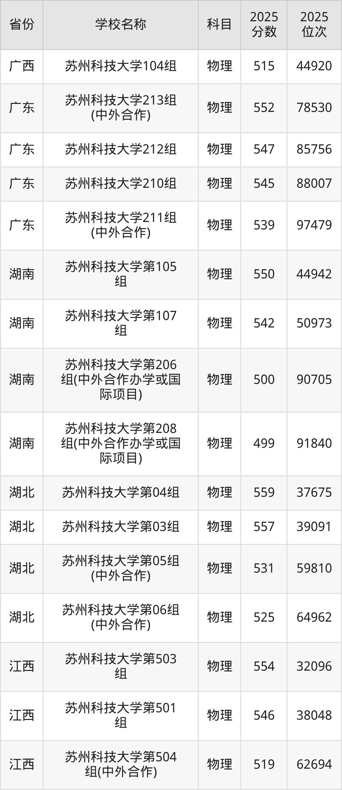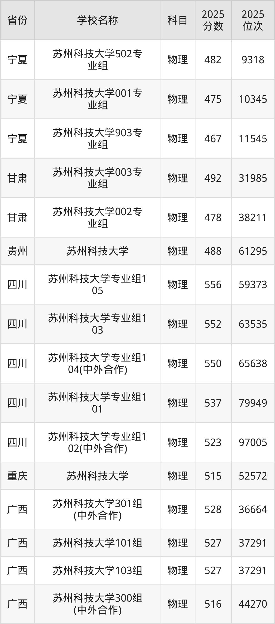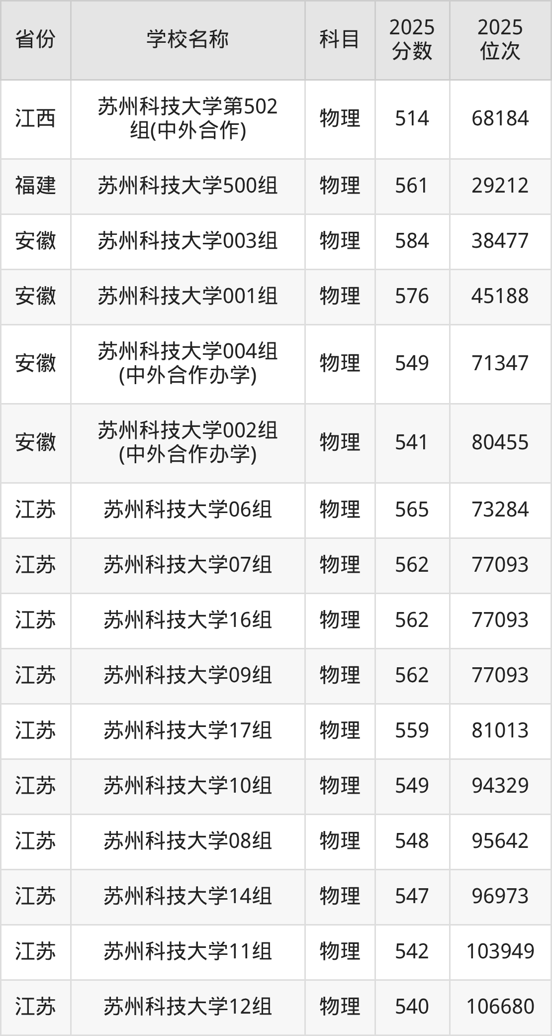 苏州科技大学2025年有12个专业组面向江苏省内首选了物理科目的考生招生: