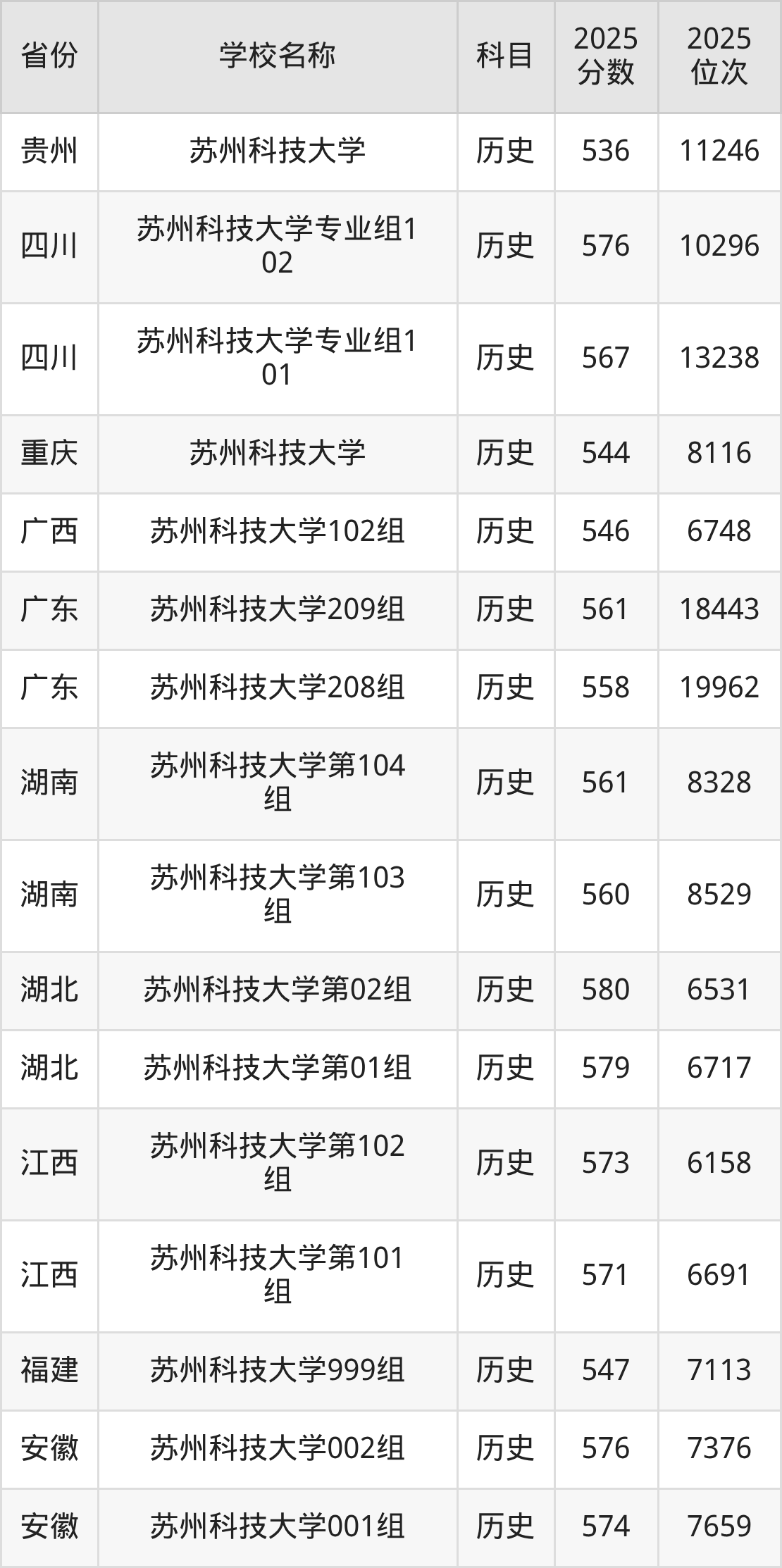 苏州科技大学2025年有4个专业组面向江苏省内首选了历史科目的考生招生:
