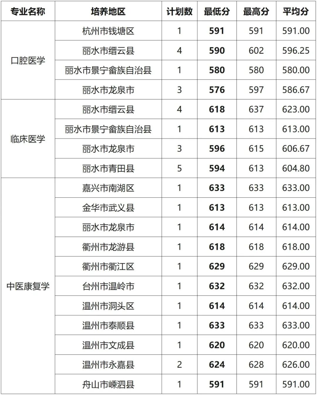 定向医学生录取分数线受地域经济水平、专业热度、招生计划多重因素影响,呈现显著分层特征。以下为2025年浙江省招收定向医学生的院校录取数据(2026年分数线预计波动±5%):