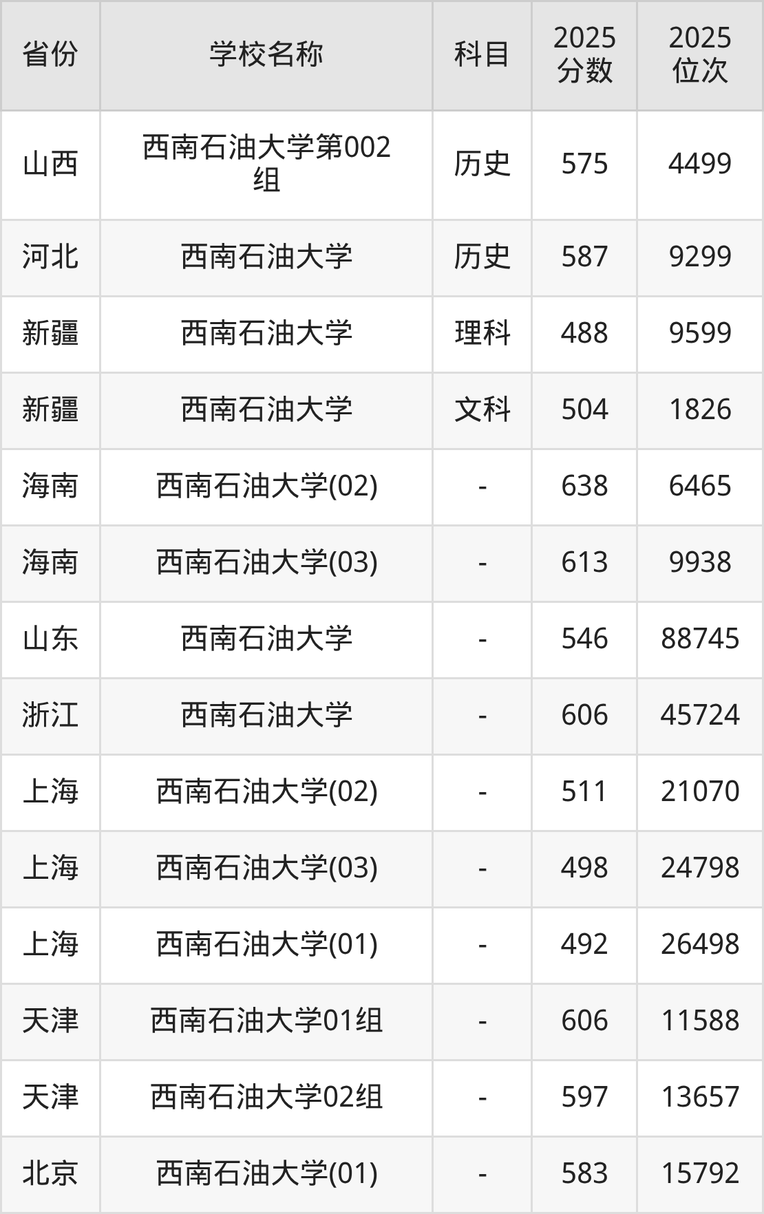 一、2025西南石油大学录取分数线