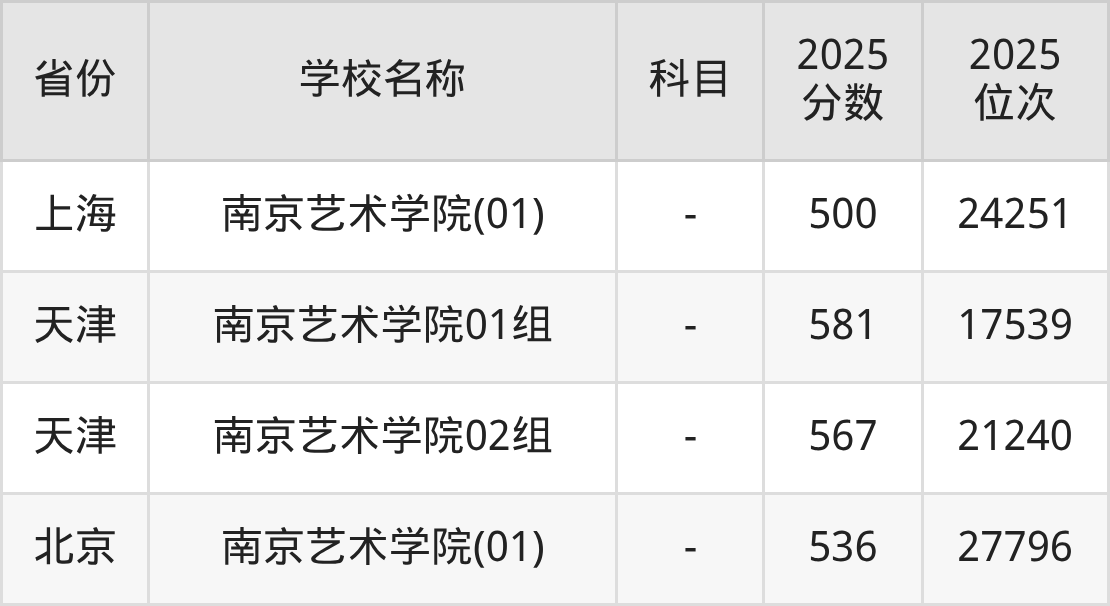 一、2025南京艺术学院录取分数线