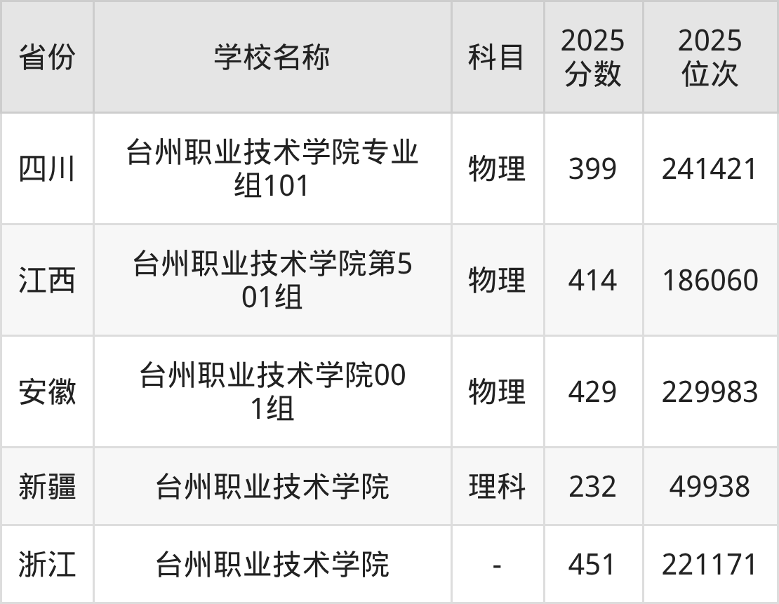 2025年台州职业技术学院在全国各省专科的最低录取分数线在232~451分之间。浙江高考生最低451分能上台州职业技术学院、安徽物理类高考生最低429分能上台州职业技术学院……下文将展示台州职业技术学院在全国5个高考省份中的专科最低投档录取分汇总!