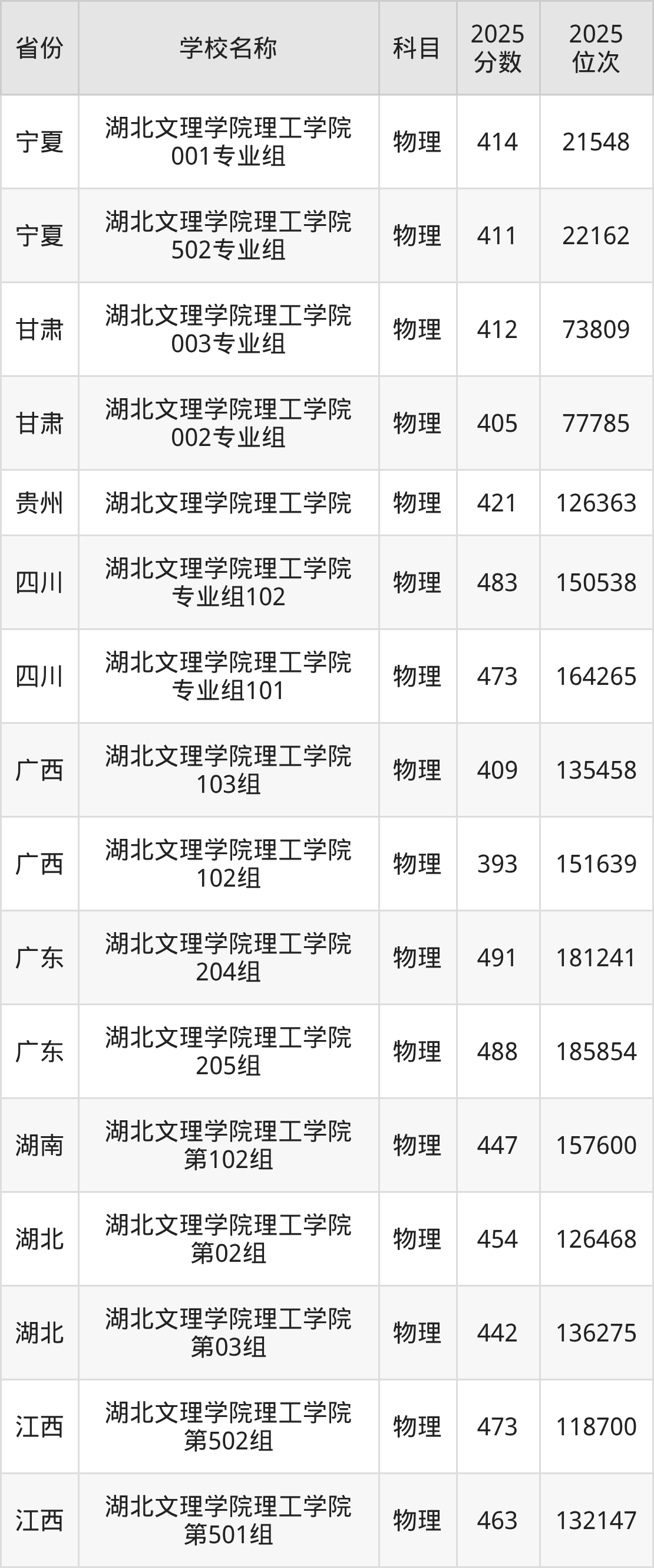 湖北文理学院理工学院2025年有3个专业组面向湖北省内首选了物理科目的考生招生: