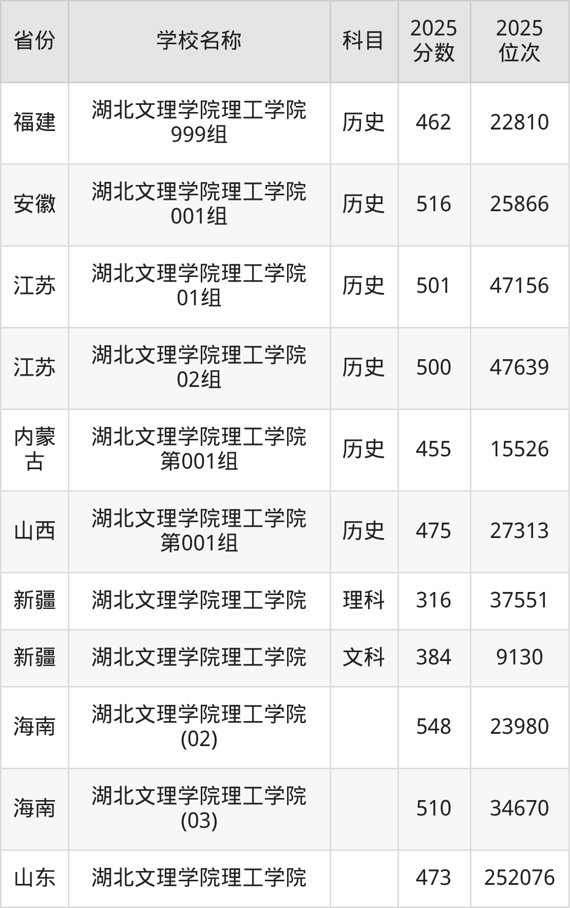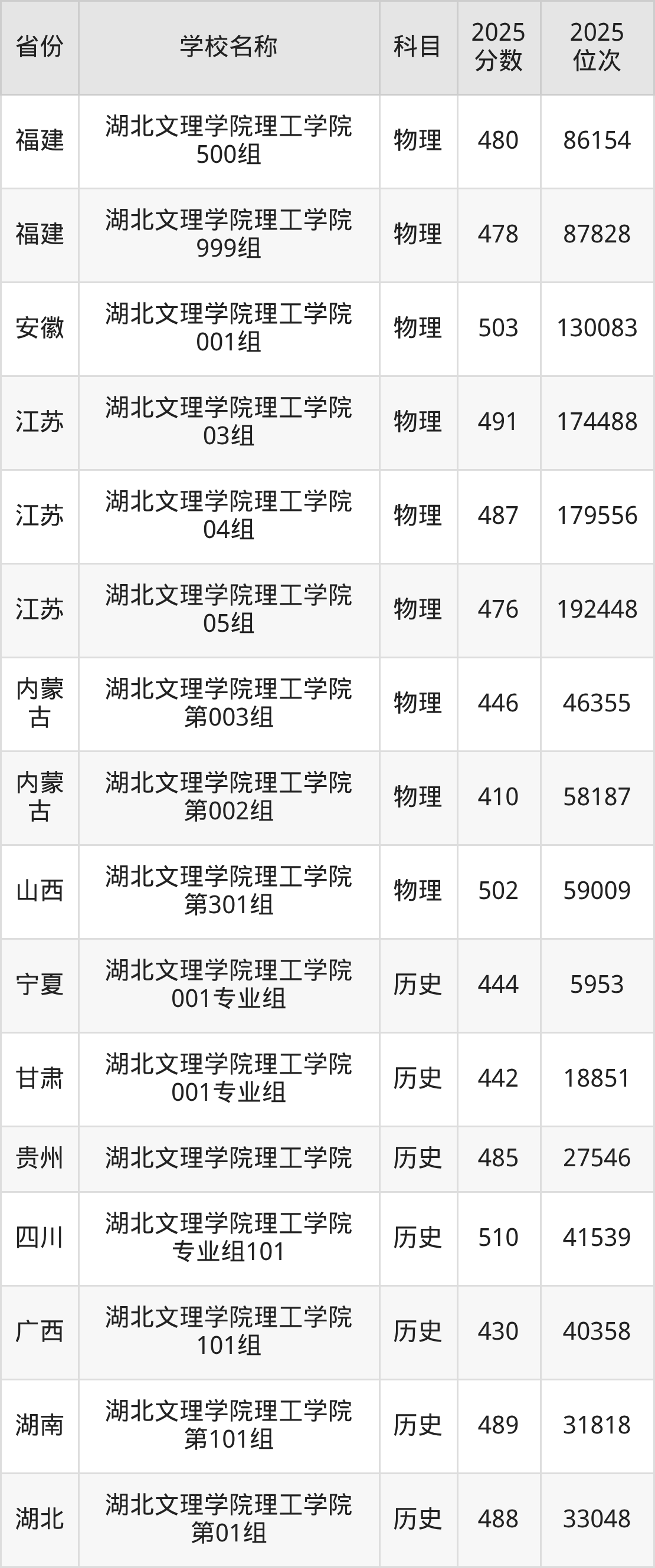 湖北文理学院理工学院2025年有2个专业组面向湖北省内首选了历史科目的考生招生: