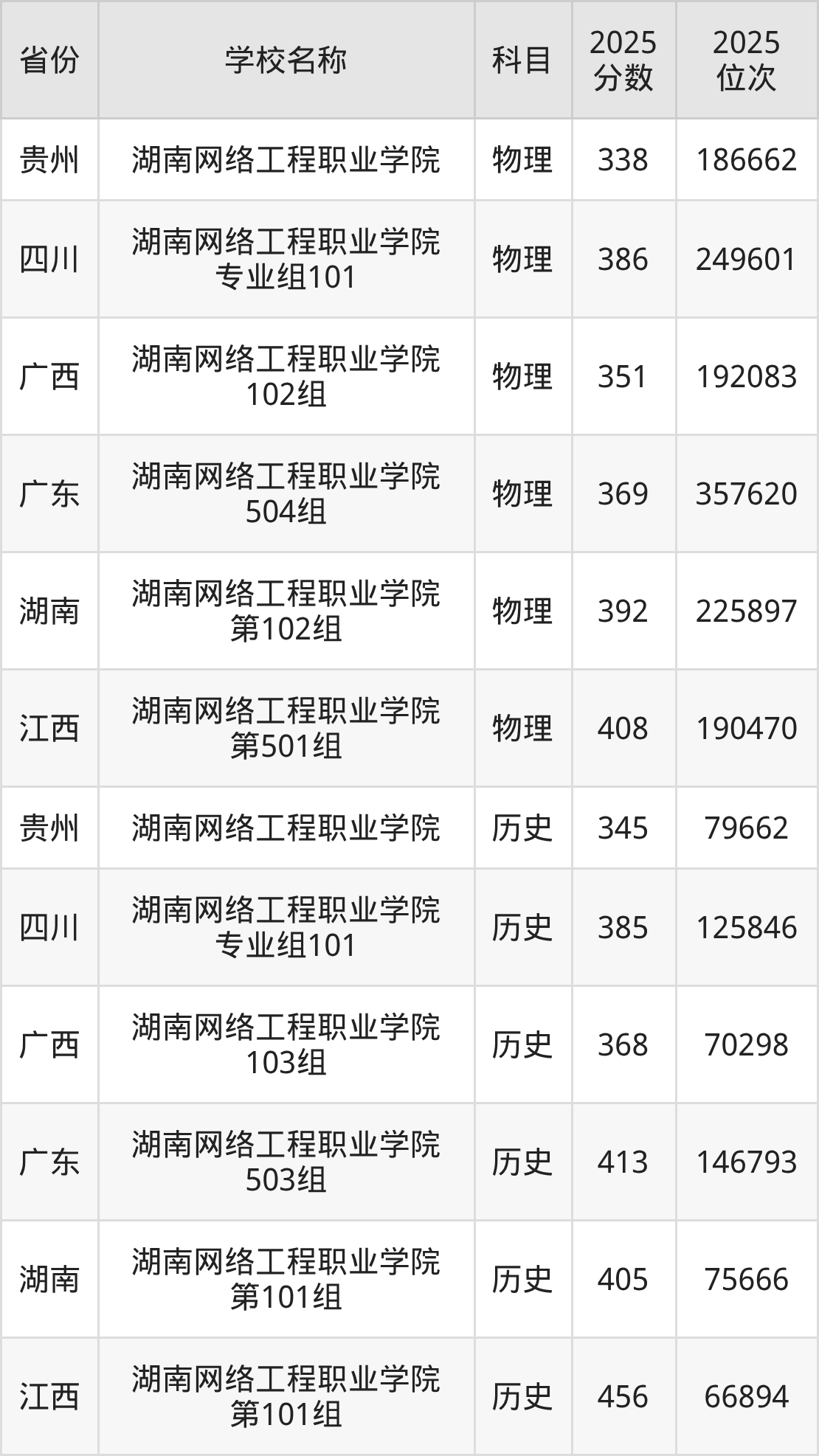湖南网络工程职业学院2025年有1个专业组面向湖南省内首选了物理科目的考生招生: