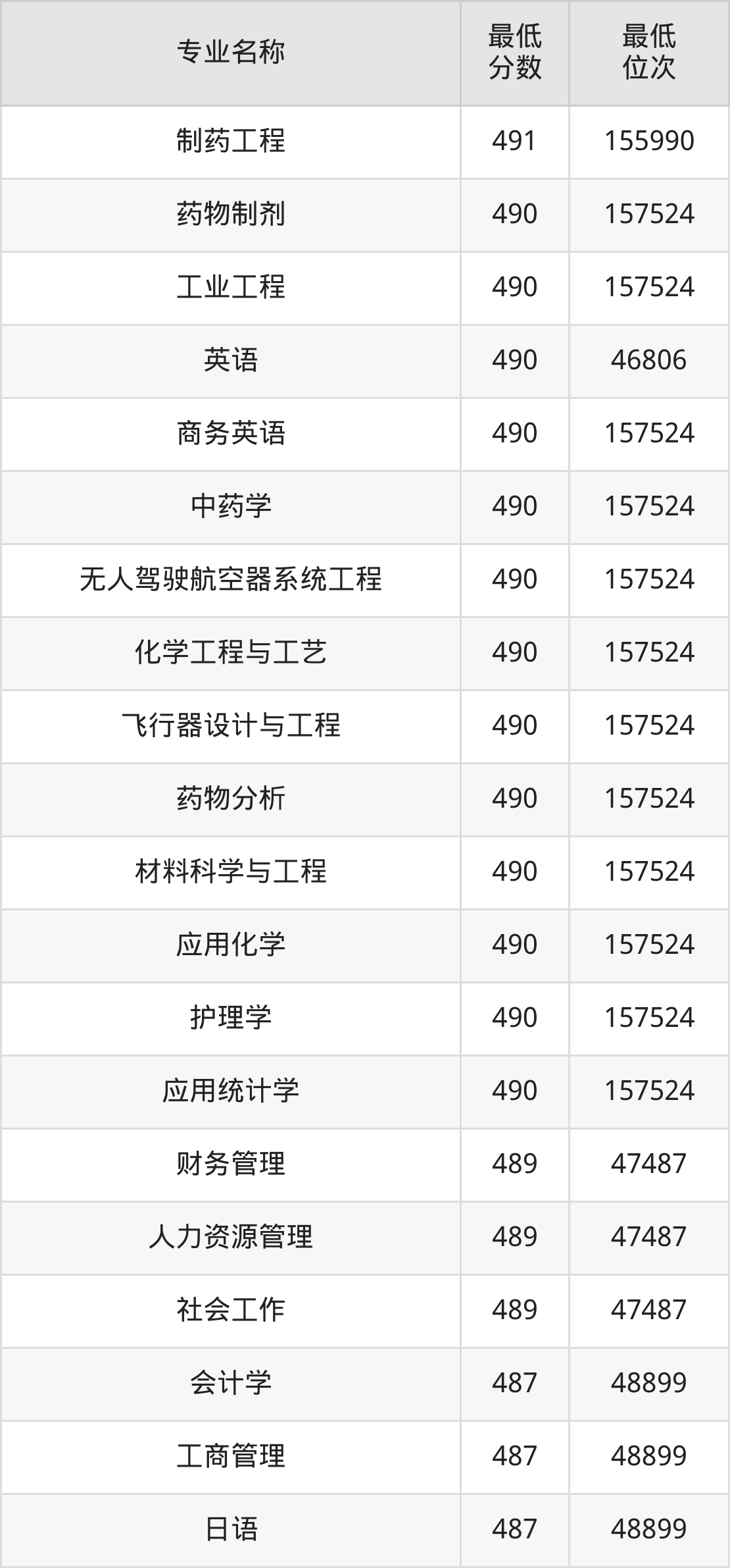 | 四川 | 理科本科二批 | —— | 496/459/448 |